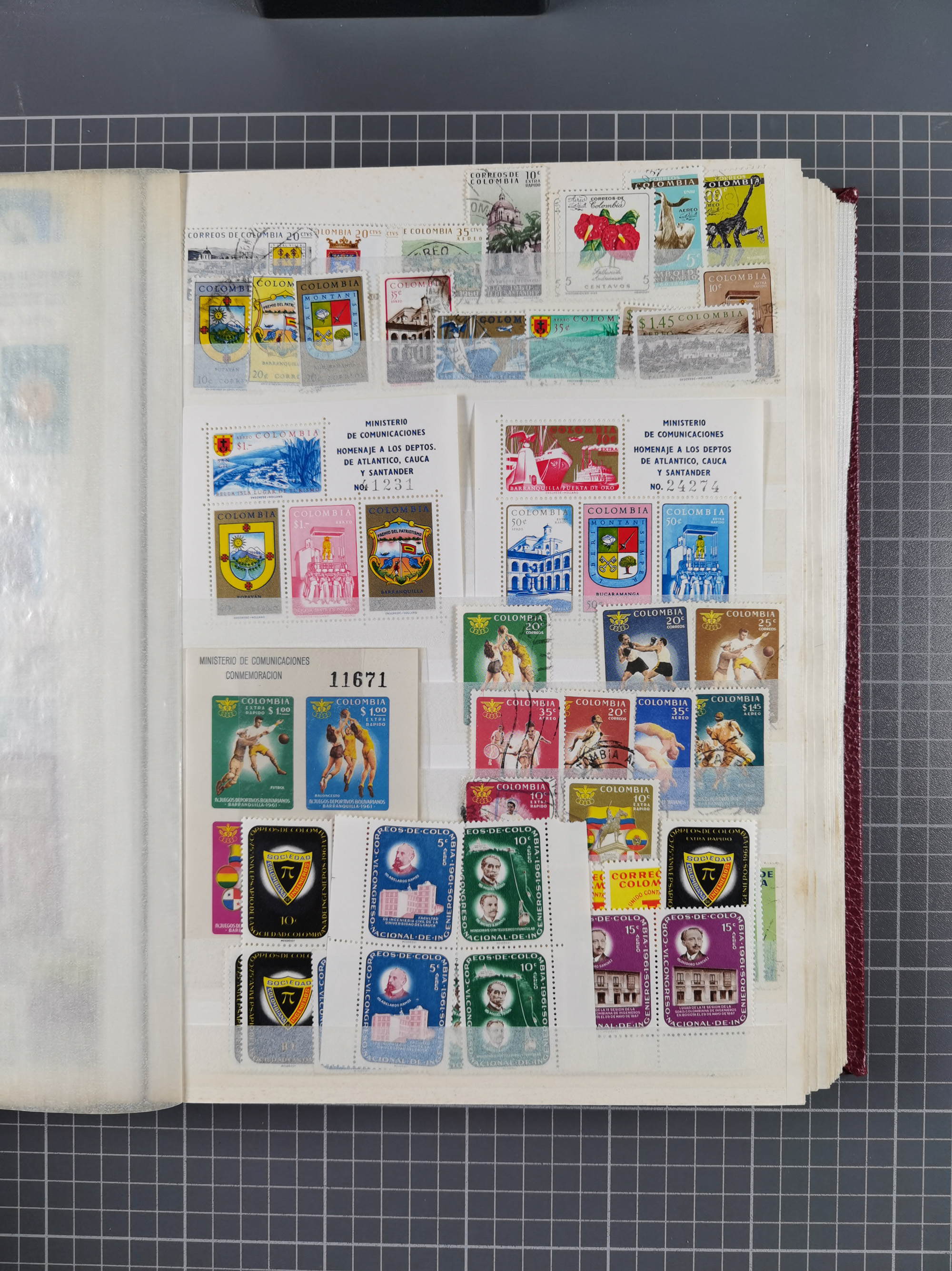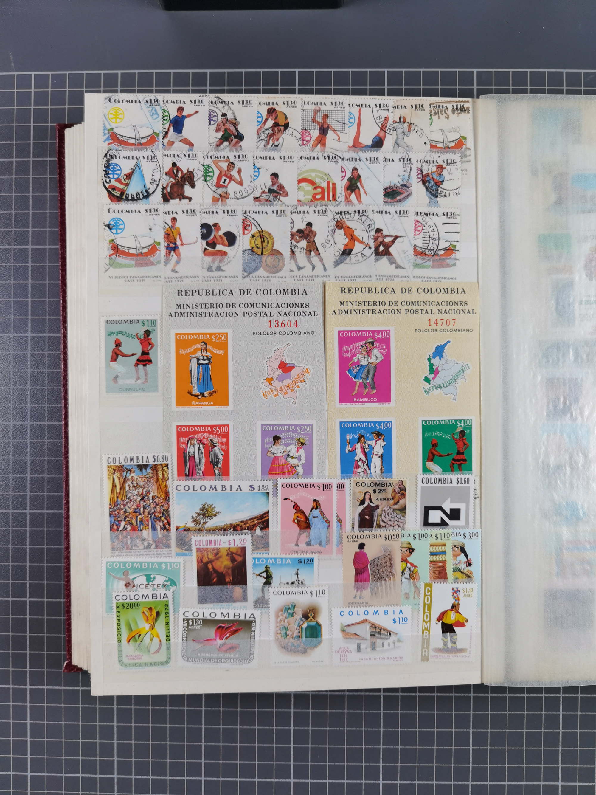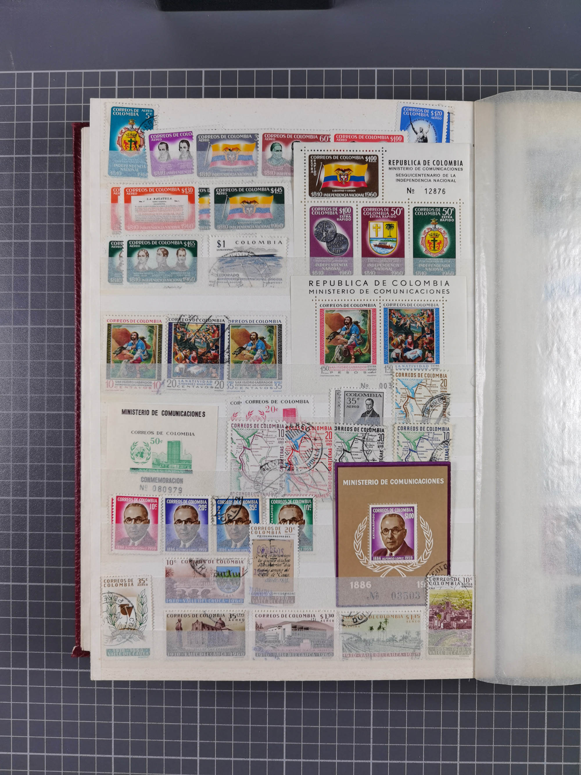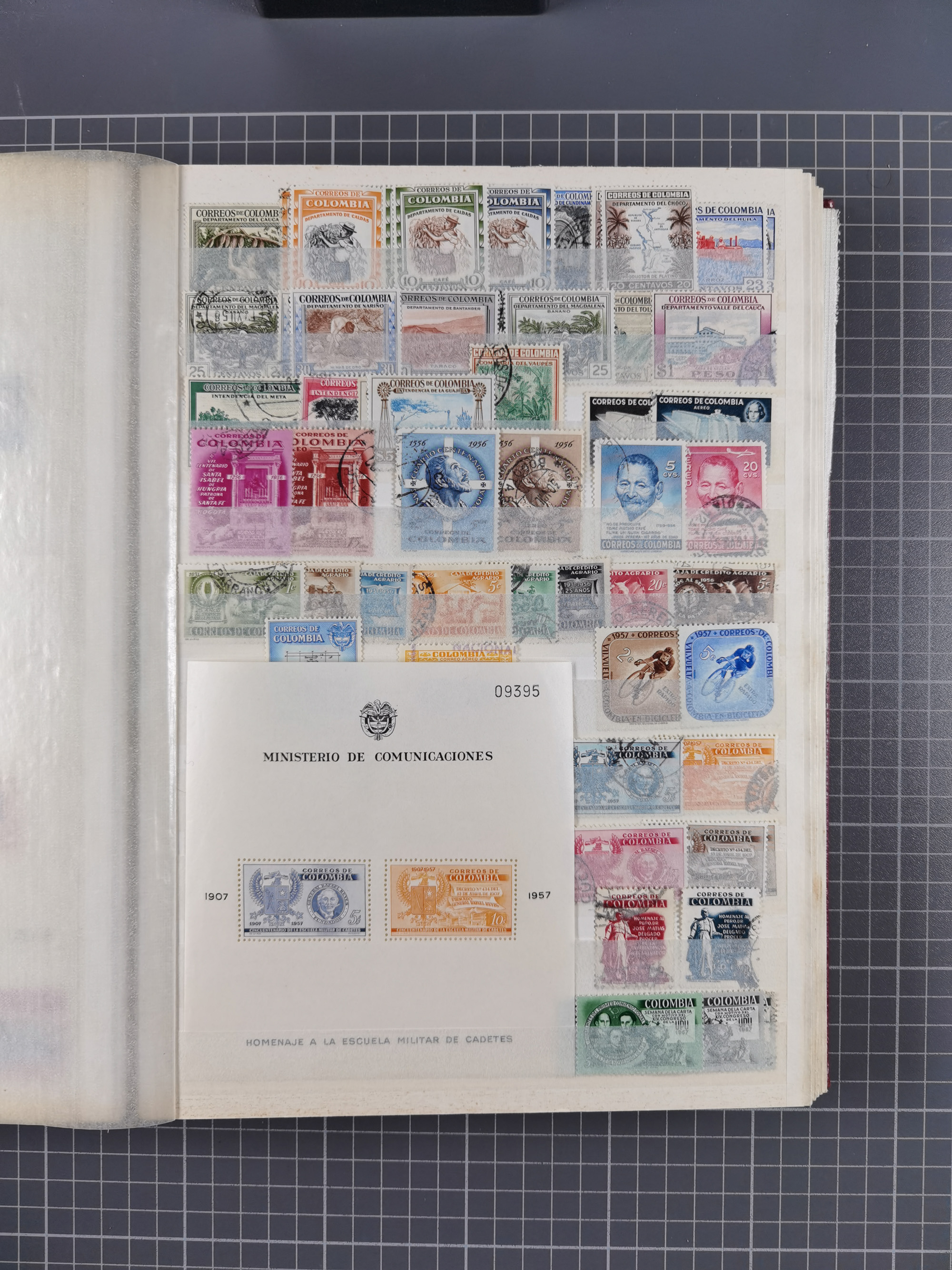 1917, Camilo Torres 1 c., plate proofs in black, green, sepia and orange, each in block of ten without gum, the orange block with horizontal crease affecting the bottom row, the sepia one toned and a few minor faults, otherwise fine, scarce assembly