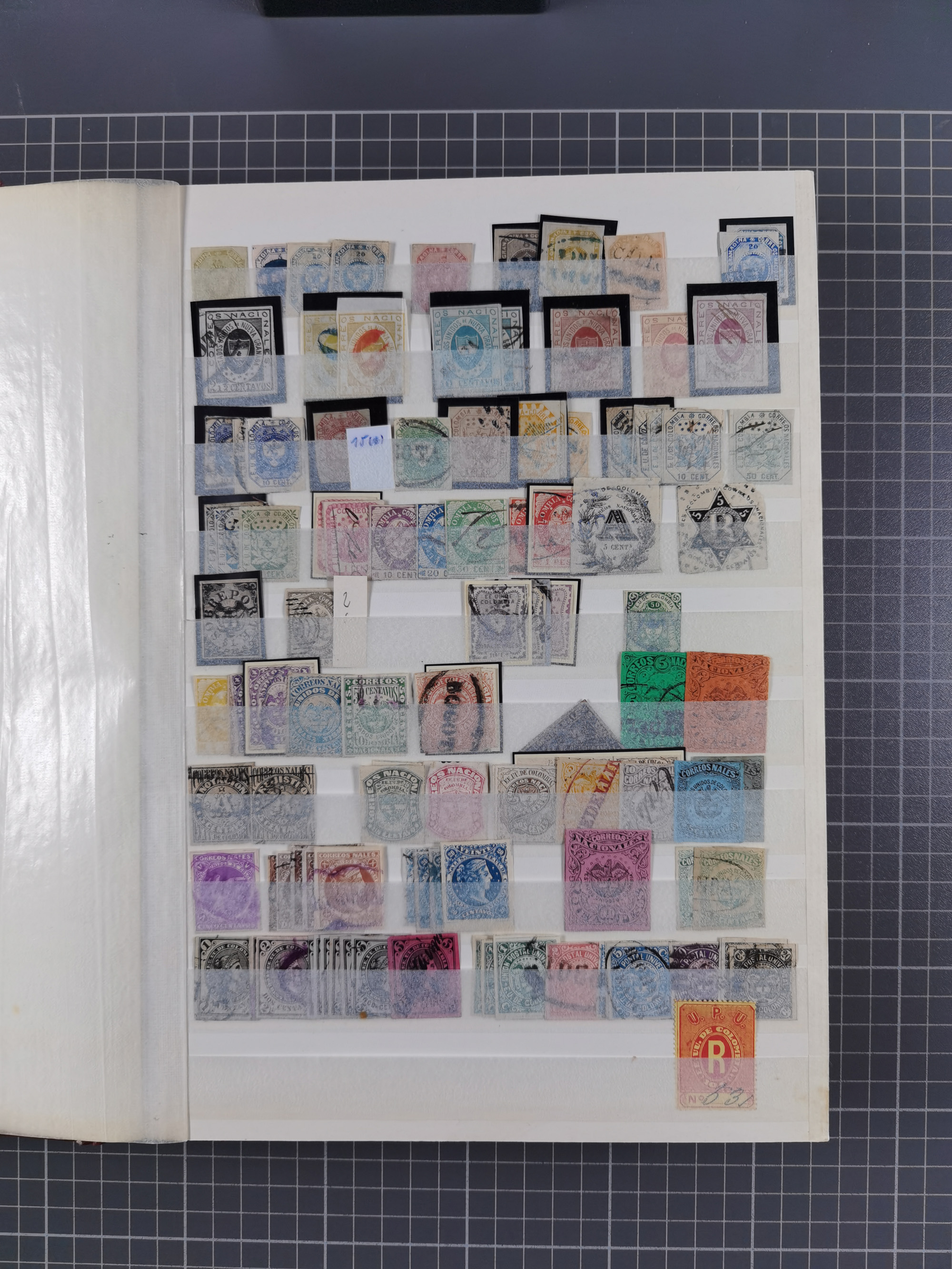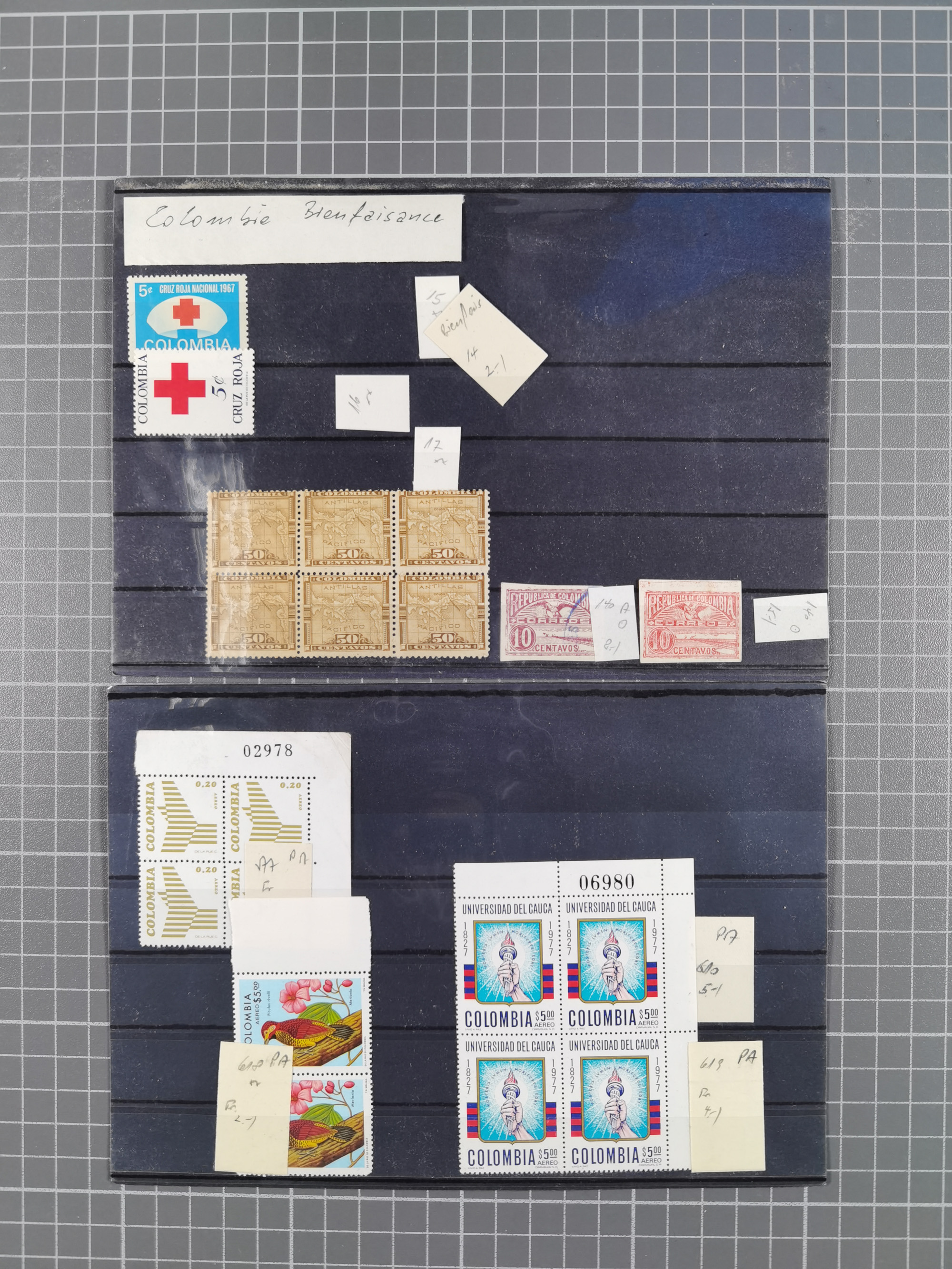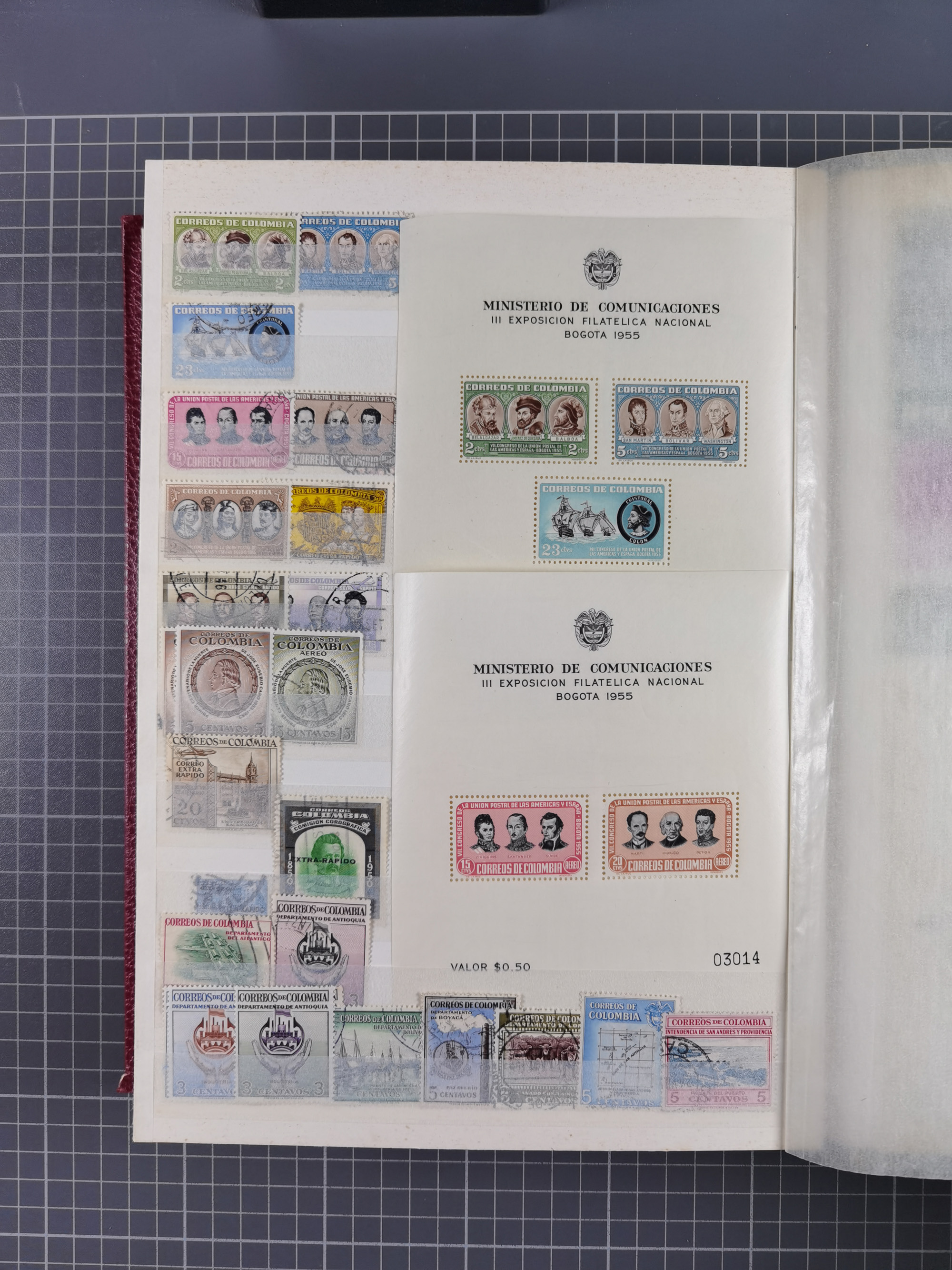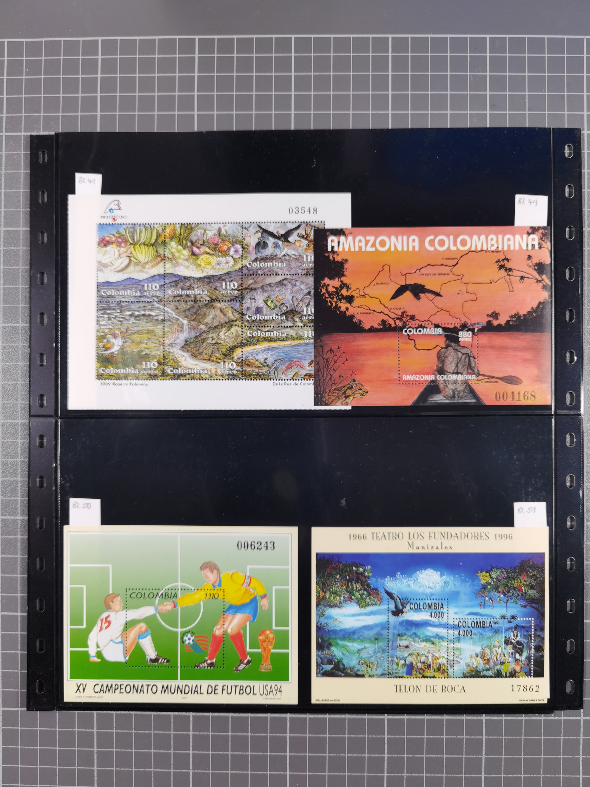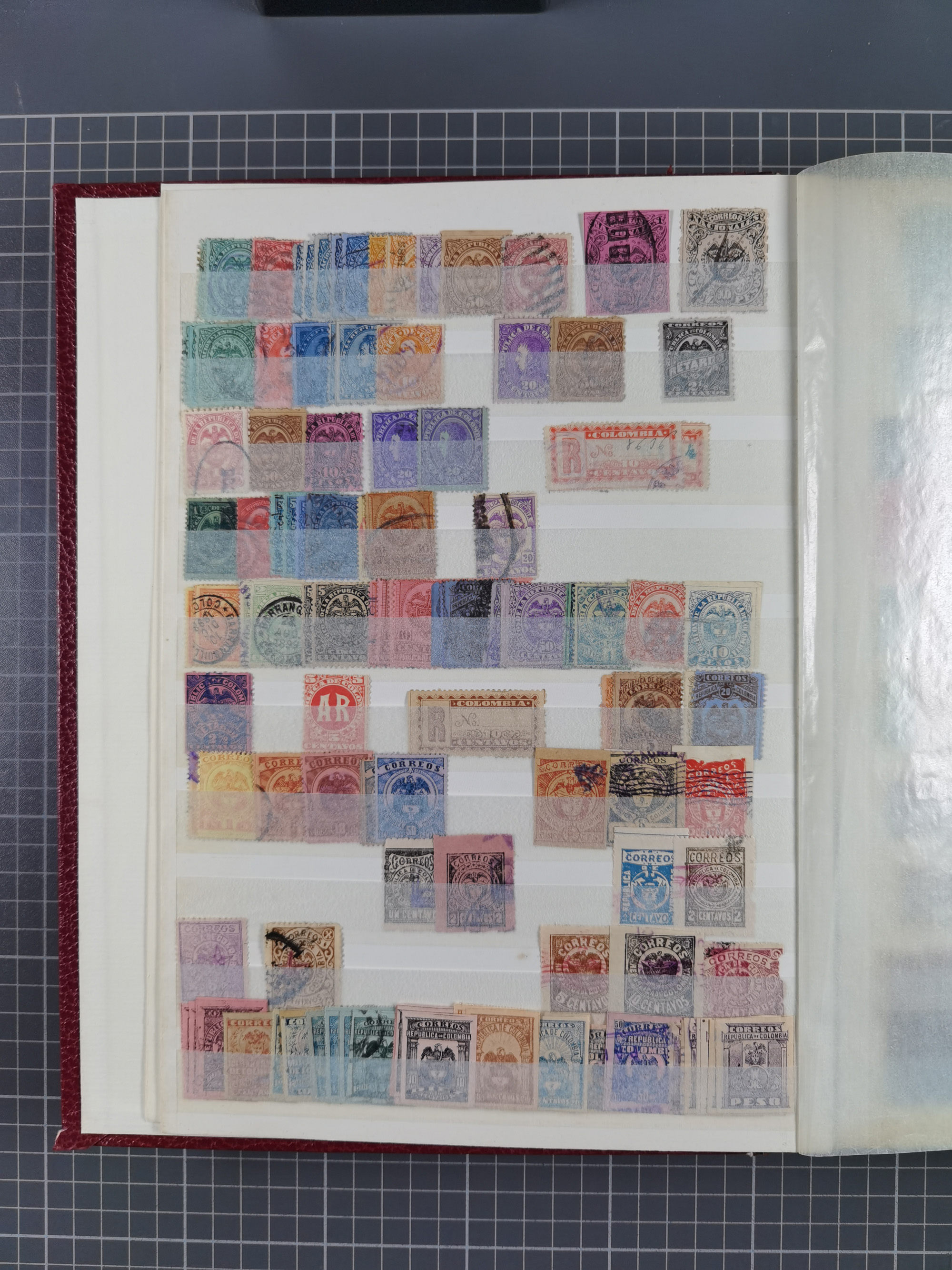 1917, Camilo Torres 1 c., plate proofs in black, green, sepia and orange, each in block of ten without gum, the orange block with horizontal crease affecting the bottom row, the sepia one toned and a few minor faults, otherwise fine, scarce assembly