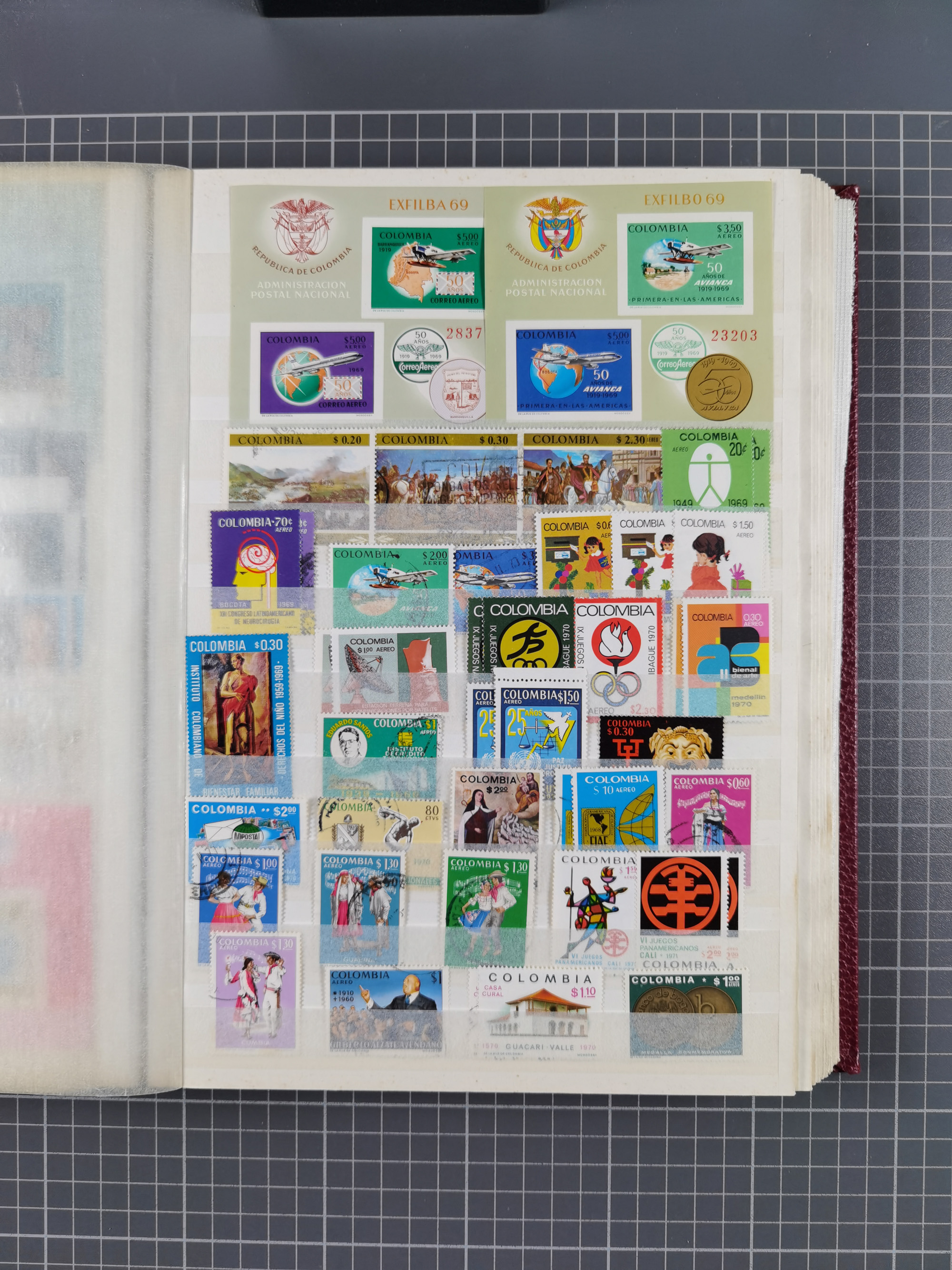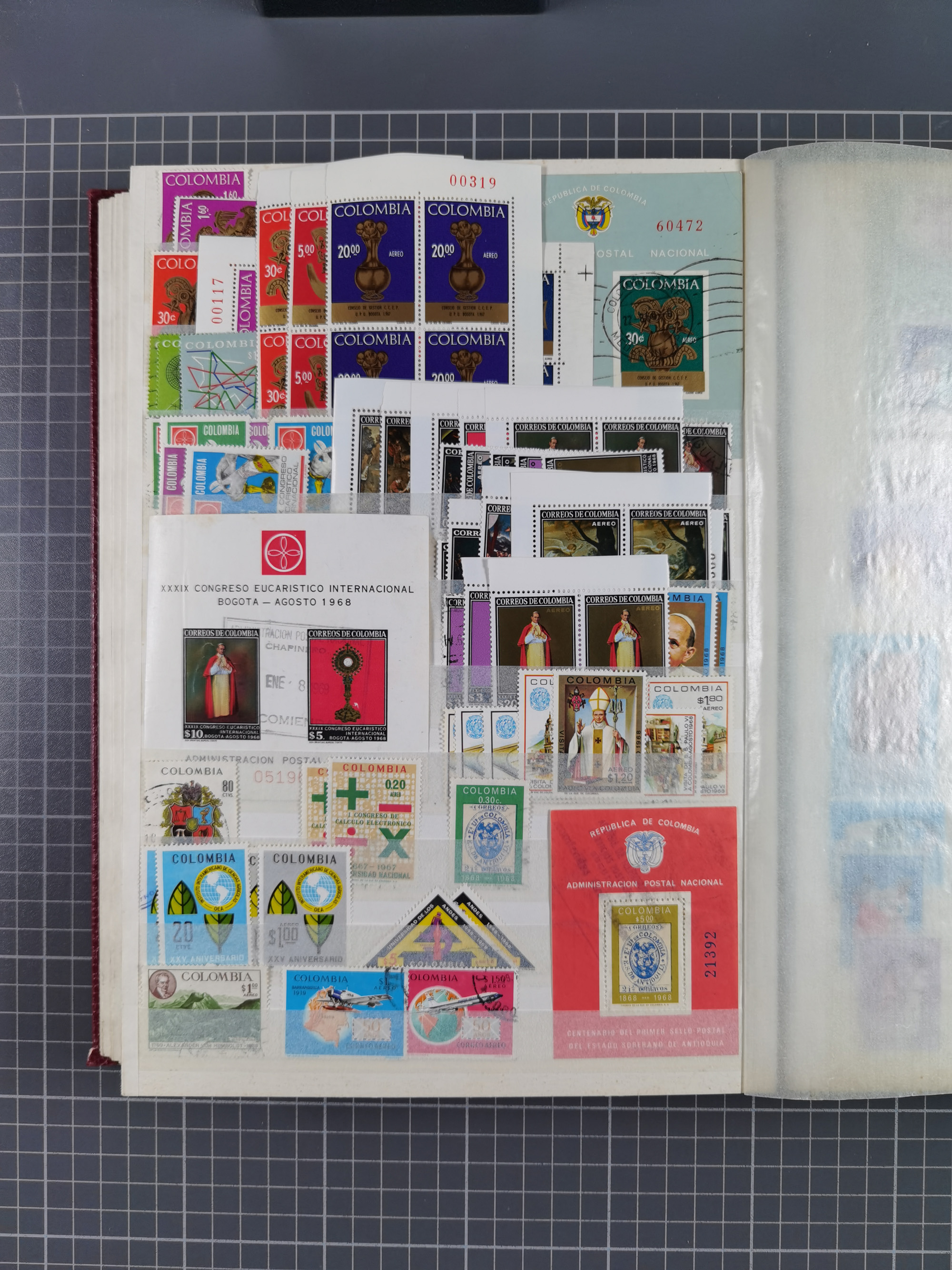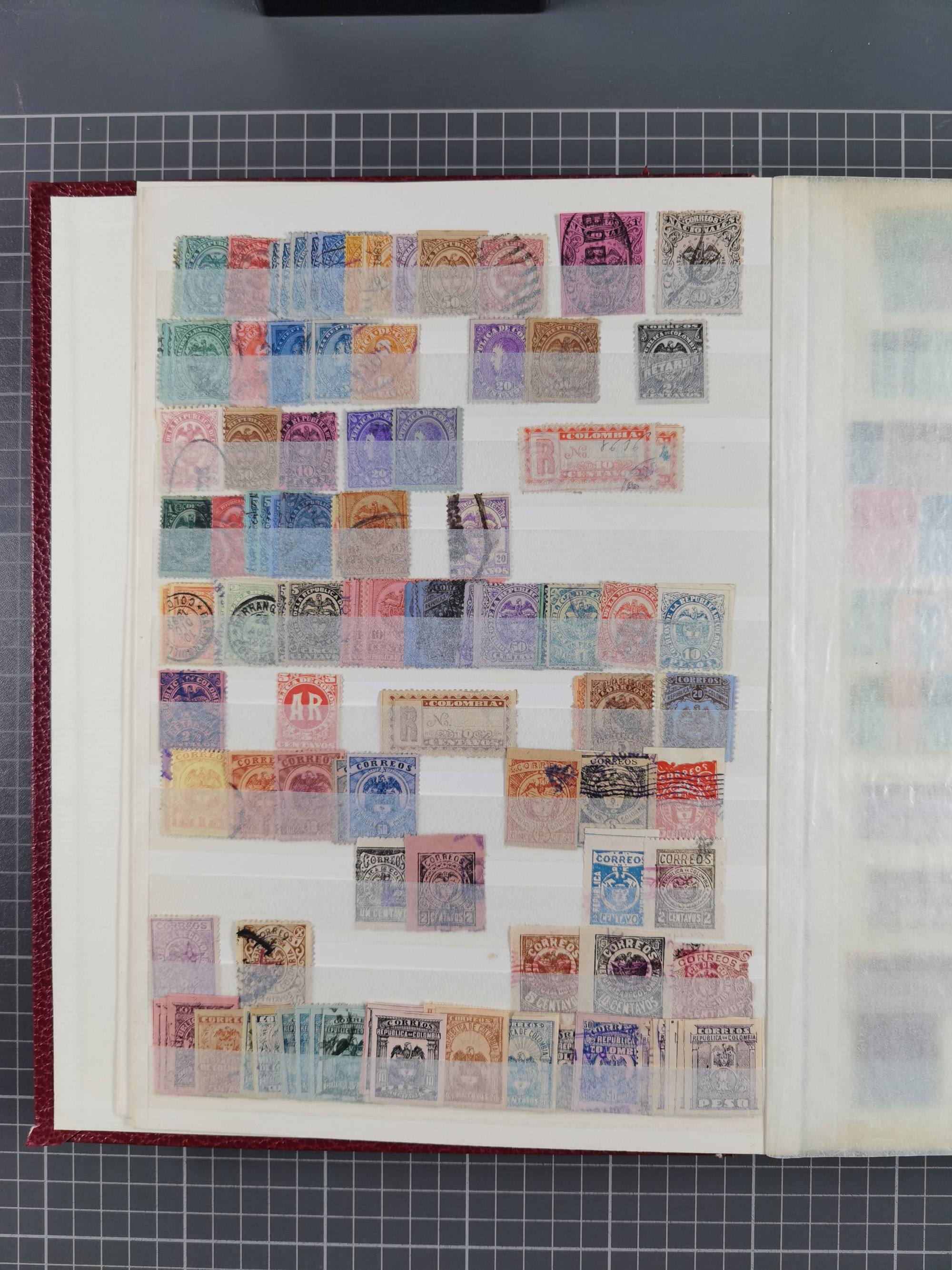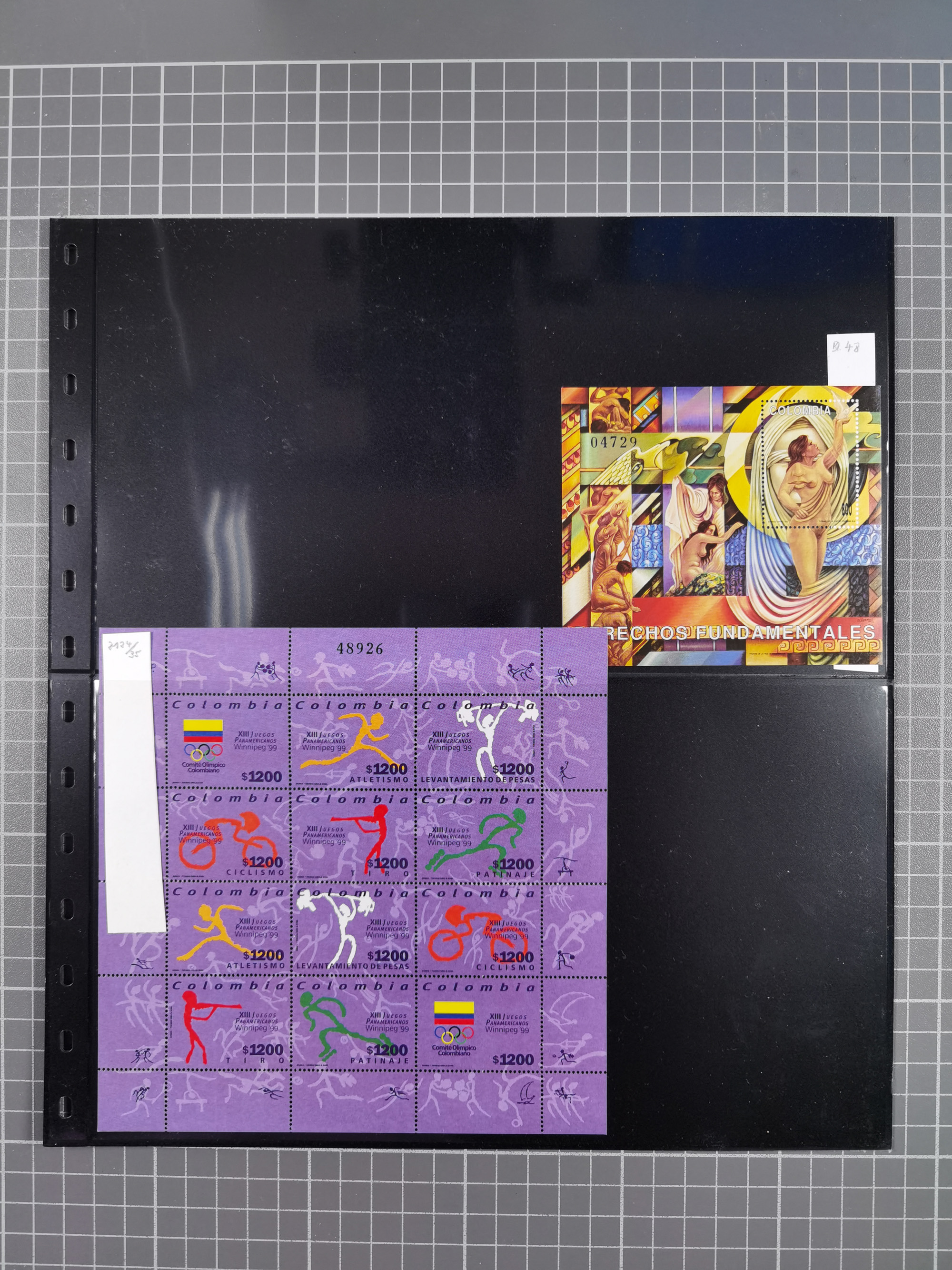 1917, Camilo Torres 1 c., plate proofs in black, green, sepia and orange, each in block of ten without gum, the orange block with horizontal crease affecting the bottom row, the sepia one toned and a few minor faults, otherwise fine, scarce assembly