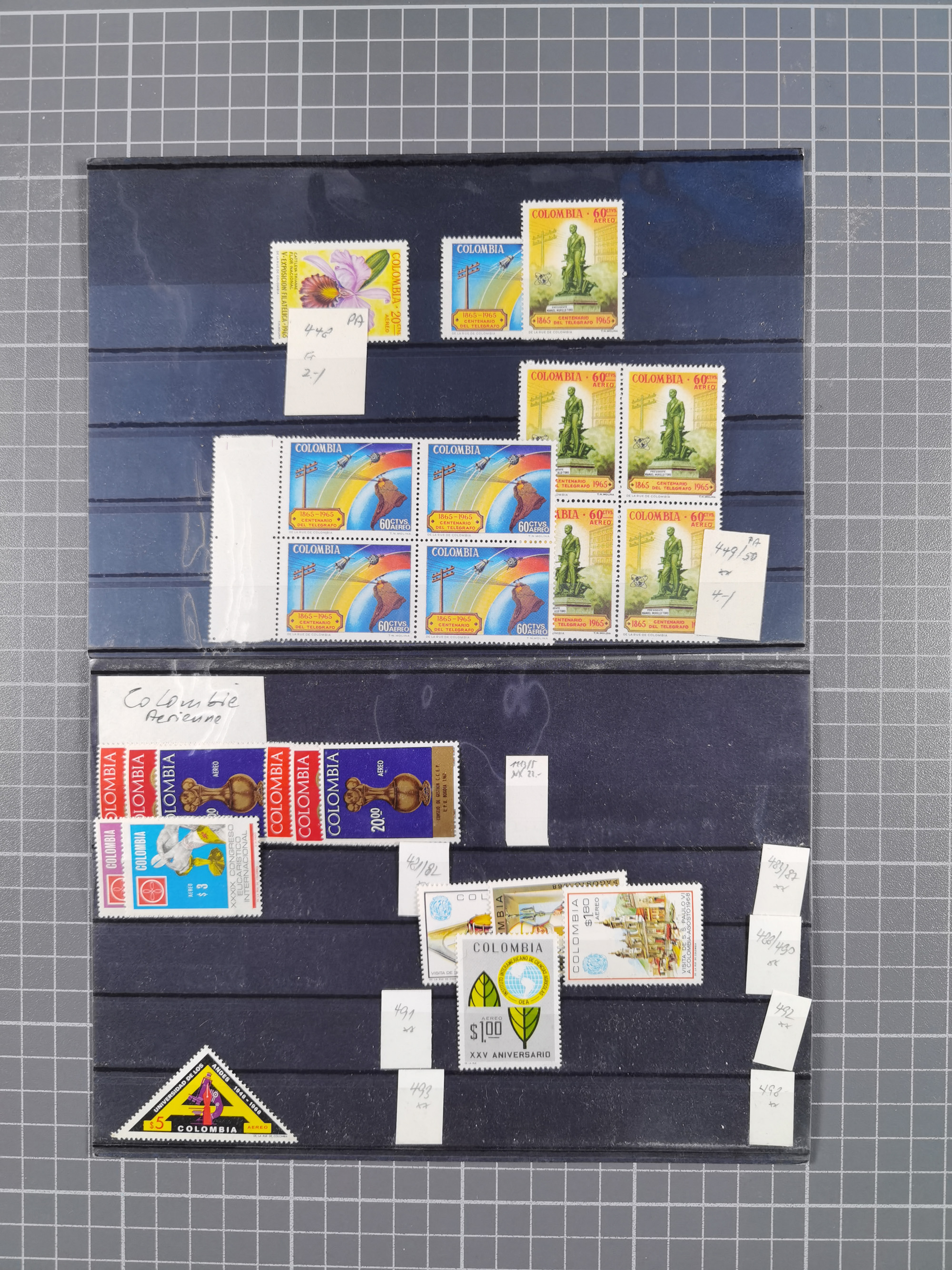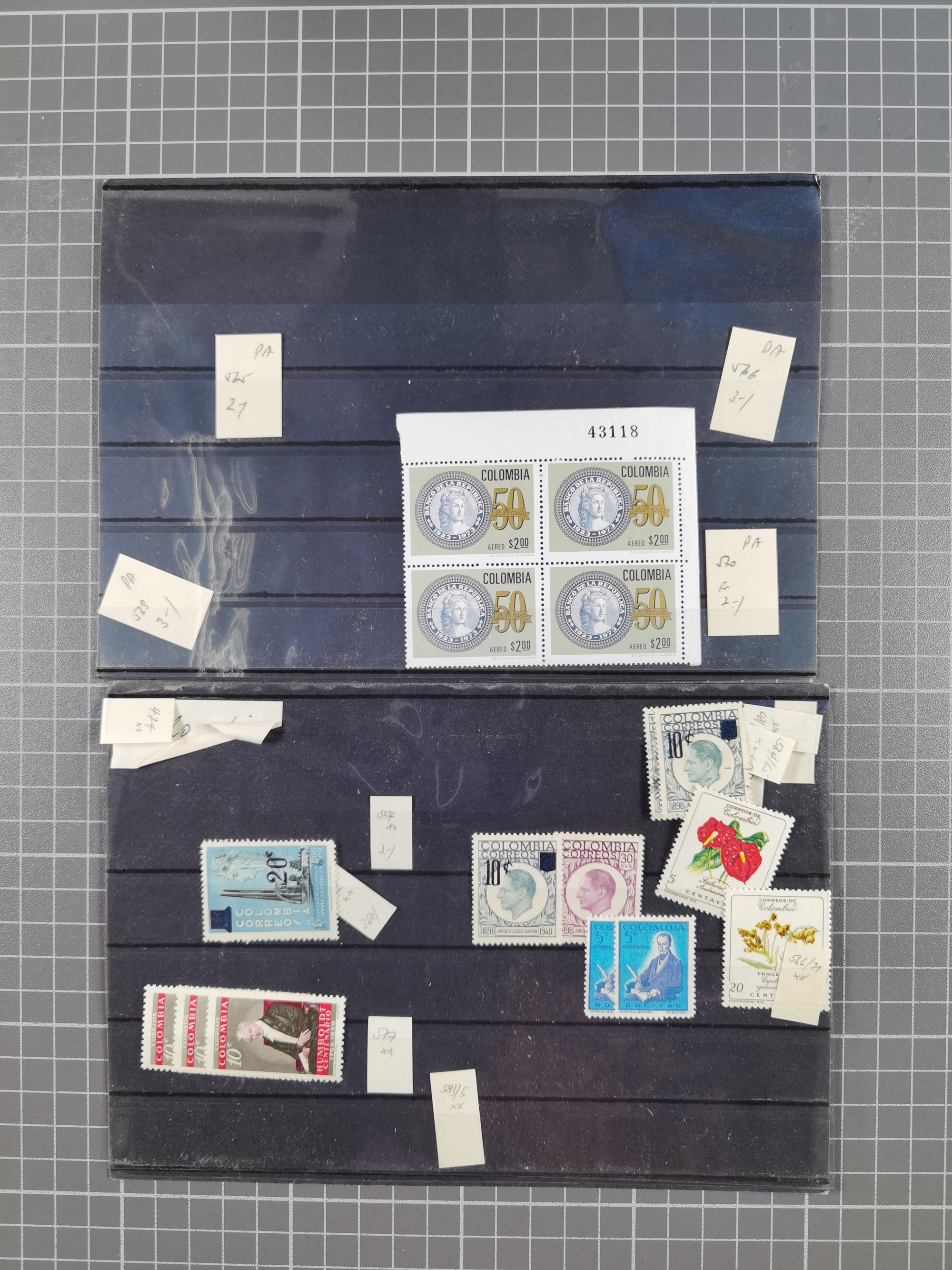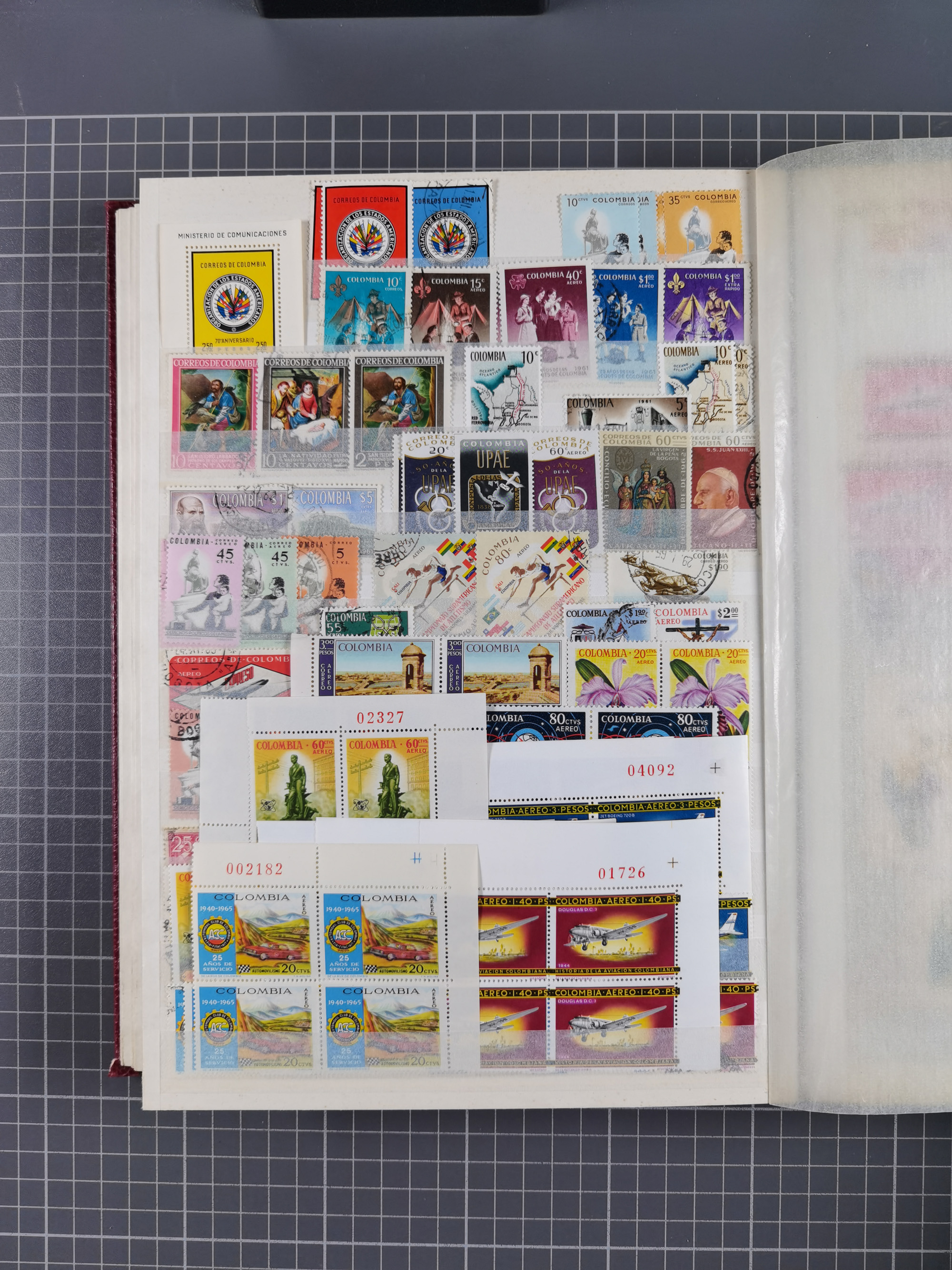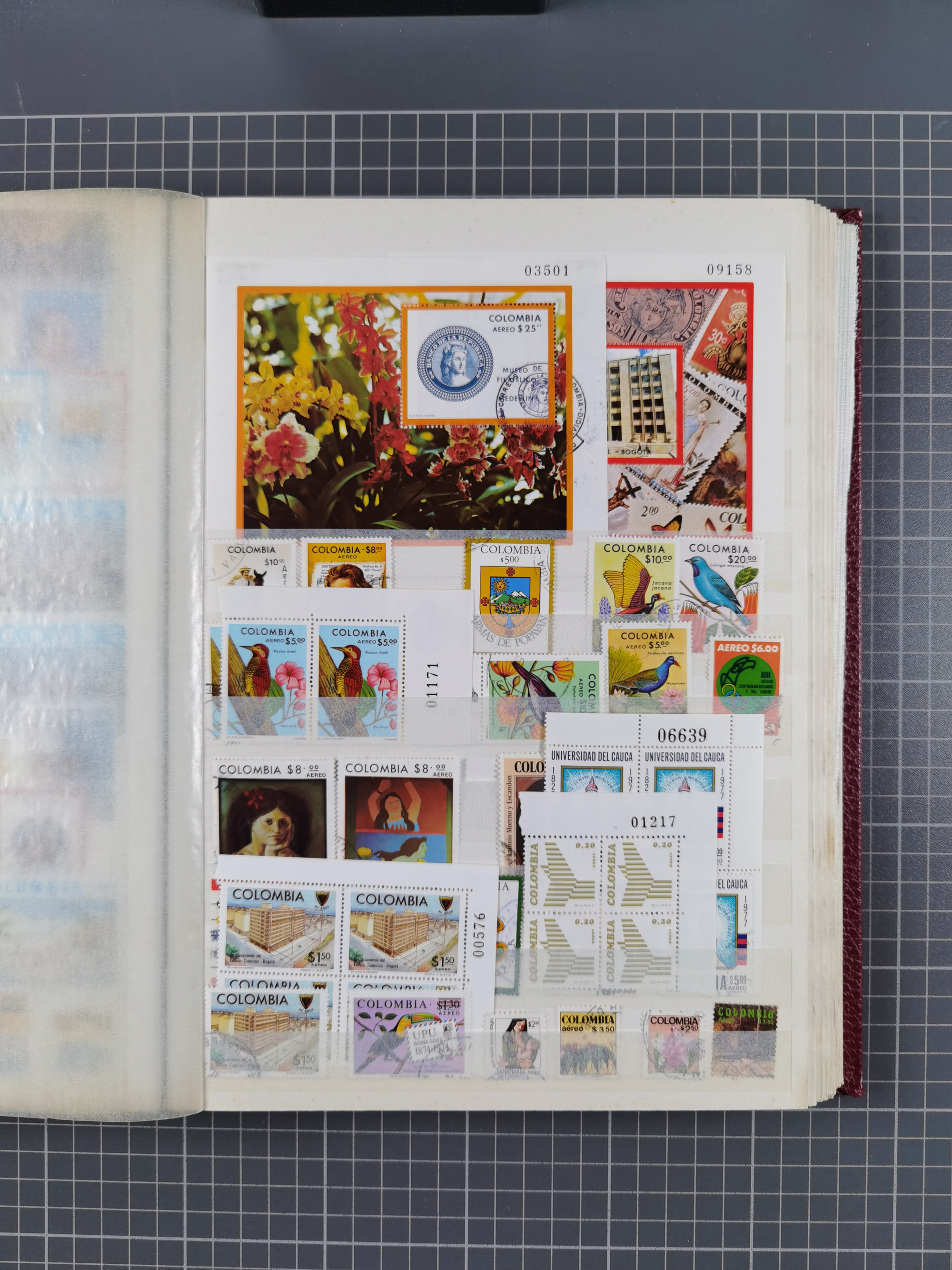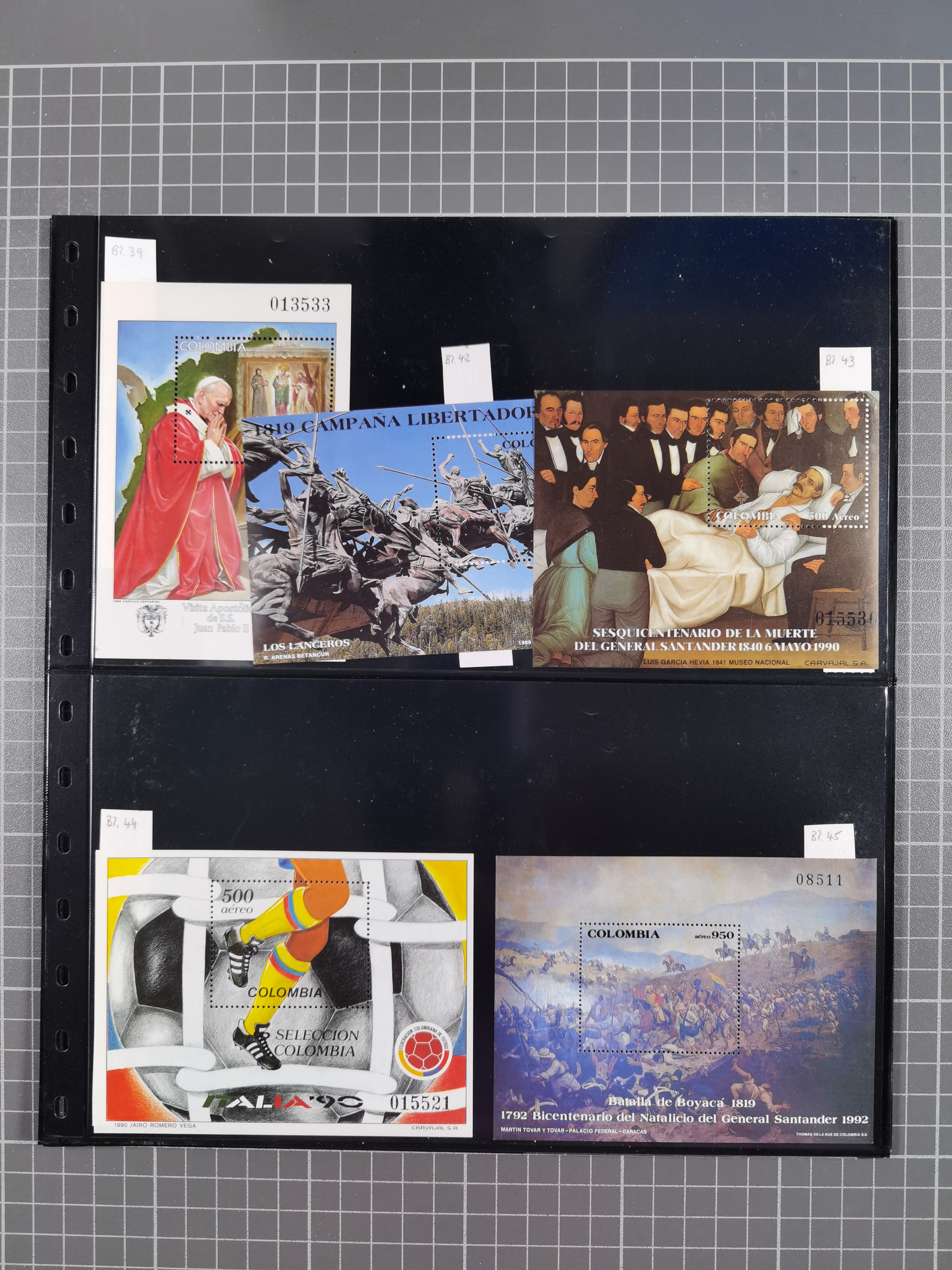 1917, Camilo Torres 1 c., plate proofs in black, green, sepia and orange, each in block of ten without gum, the orange block with horizontal crease affecting the bottom row, the sepia one toned and a few minor faults, otherwise fine, scarce assembly