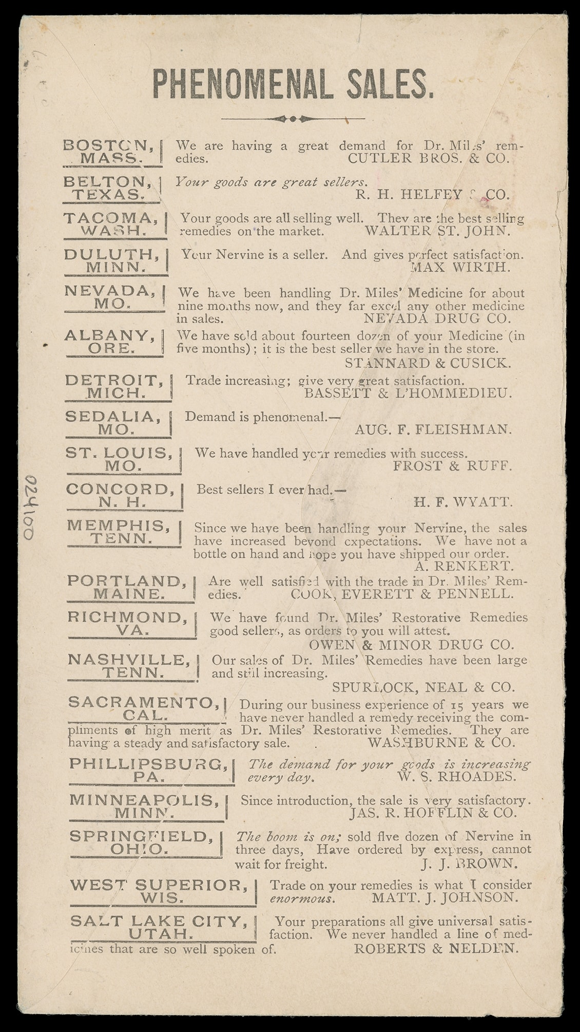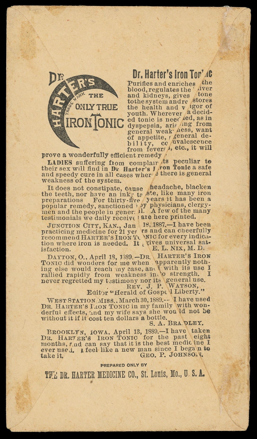 Iowa; open on three sides for display, Very Fine and scarce medical ad. Estimate; $100 - 150. (Image1) (Image2)