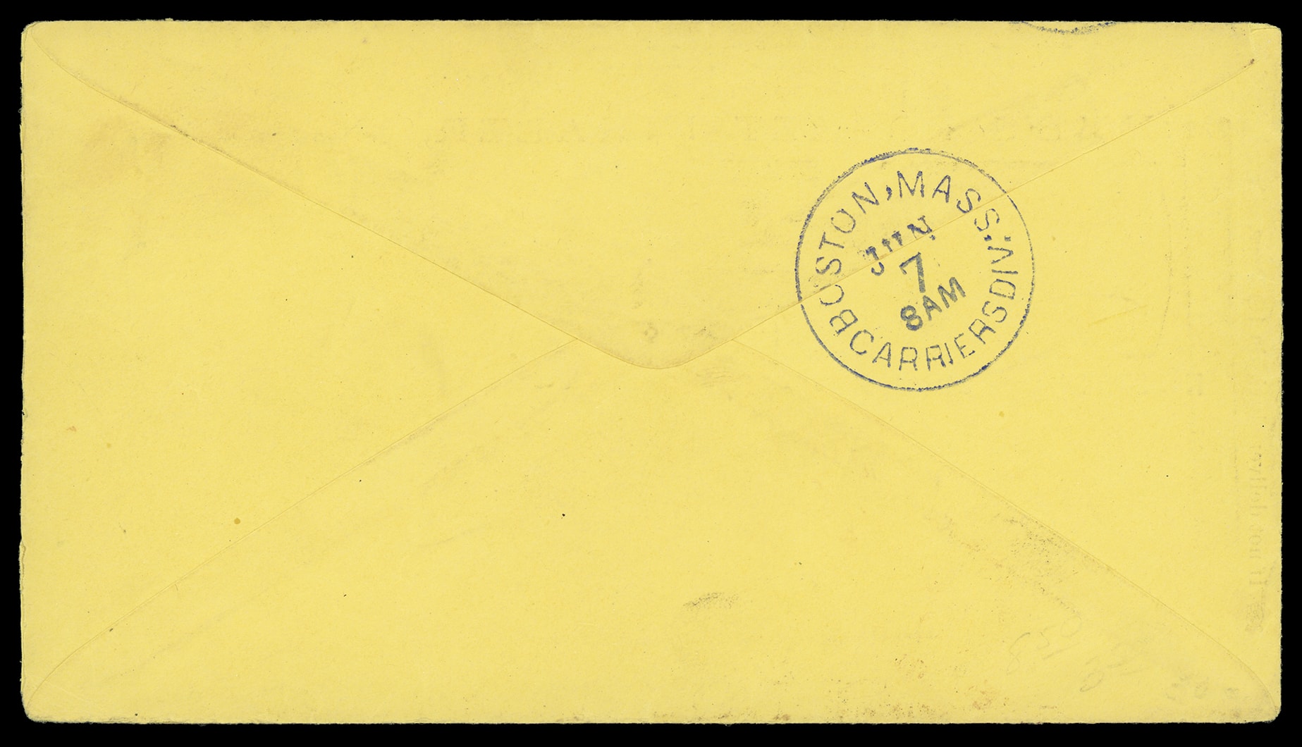 Mass., Jun 7" arrival cds, blue sharp "Boston, Mass. Carriers Div., Jun 7, 8am" cds backstamp, Very Fine. Estimate; $75 - 100. (Image1) (Image2)