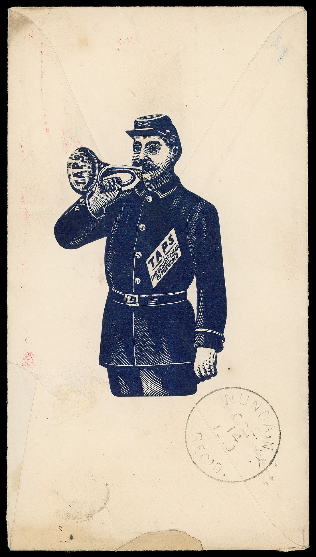 Beef Wine & Iron, Thurber Whyland & Co, New York. Attractive red illustrated advertising across top, reverse with additional blue illustrated advertising for "Taps The Best 5¢ Cigar in the World" on 2¢ green entire canceled by "New