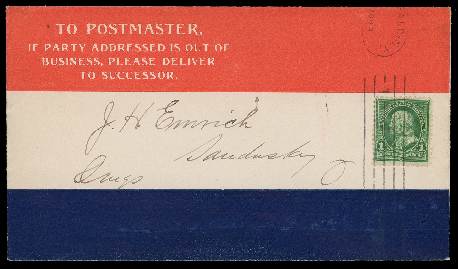 to Sandusky, Ohio, Very Fine to Extremely Fine cover. Estimate; $75 - 100. (Image1)