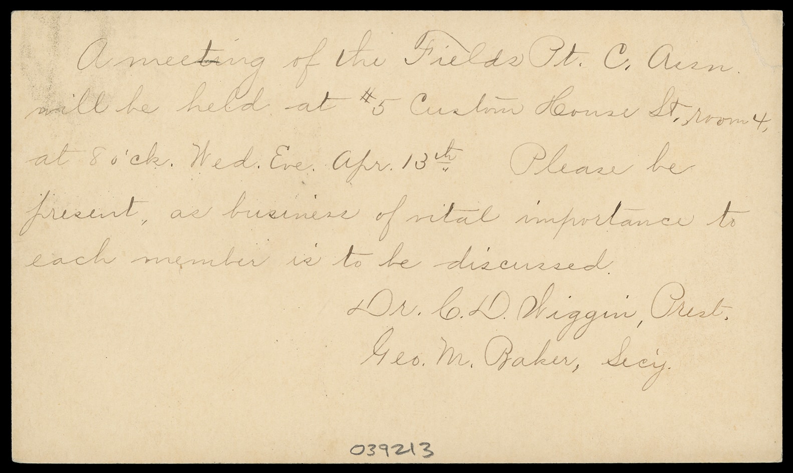 cancel. Skinner-Eno No. LS-W unlisted. Estimate; $200 - 300. (Image1) (Image2)