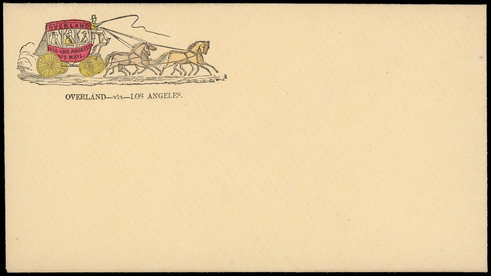 Angeles. Hand-colored illustrated four-horse stagecoach design on mint buff cover, Extremely Fine. Estimate; $100 - 150. (Image1)