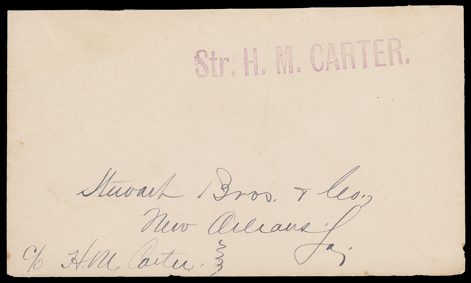 Carter. Purple straightline handstamp on cover to New Orleans La., Very Fine and unlisted in Milgram, only recorded example. Milgram No. 607C; Estimate $75 - 100.