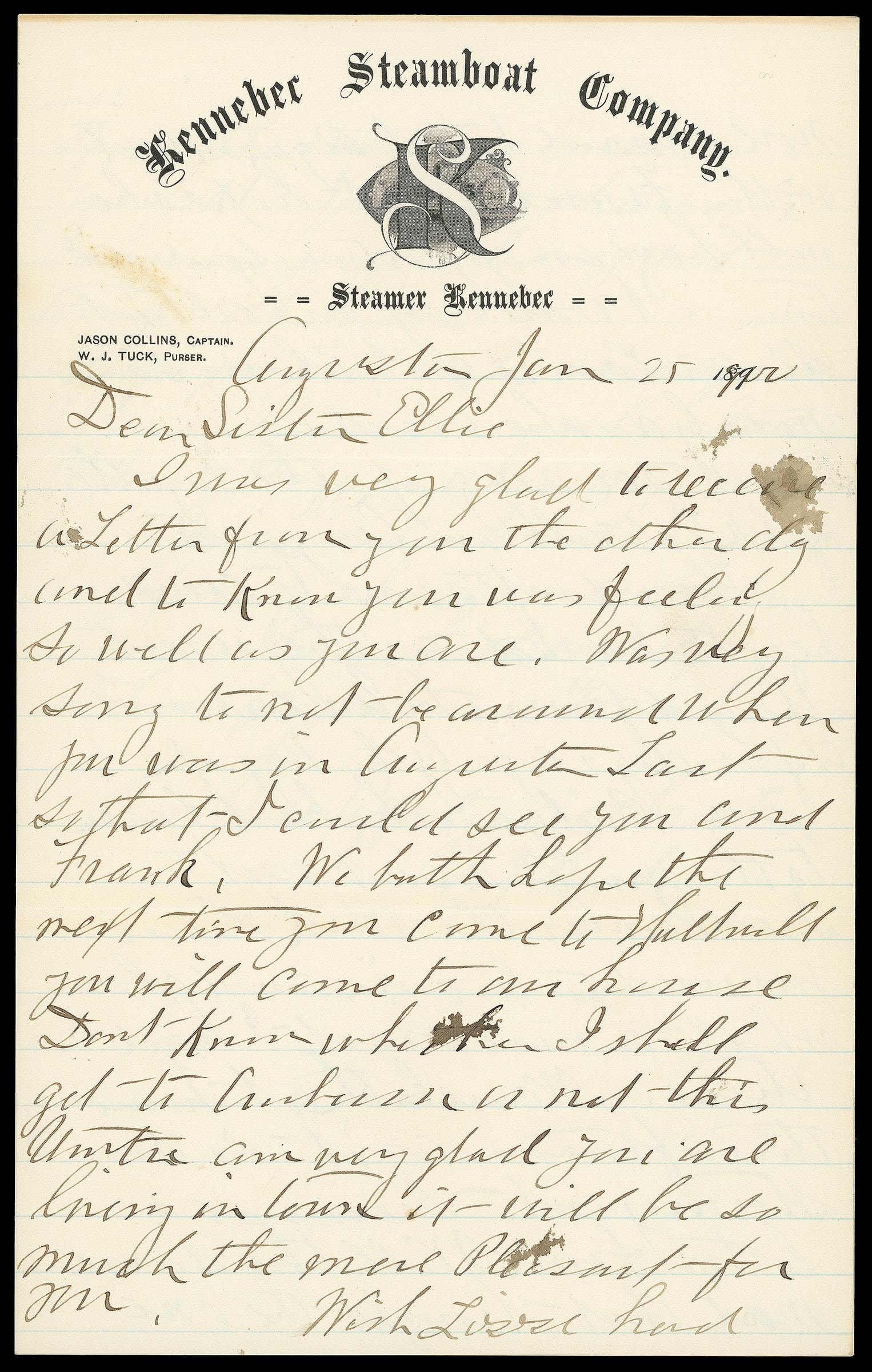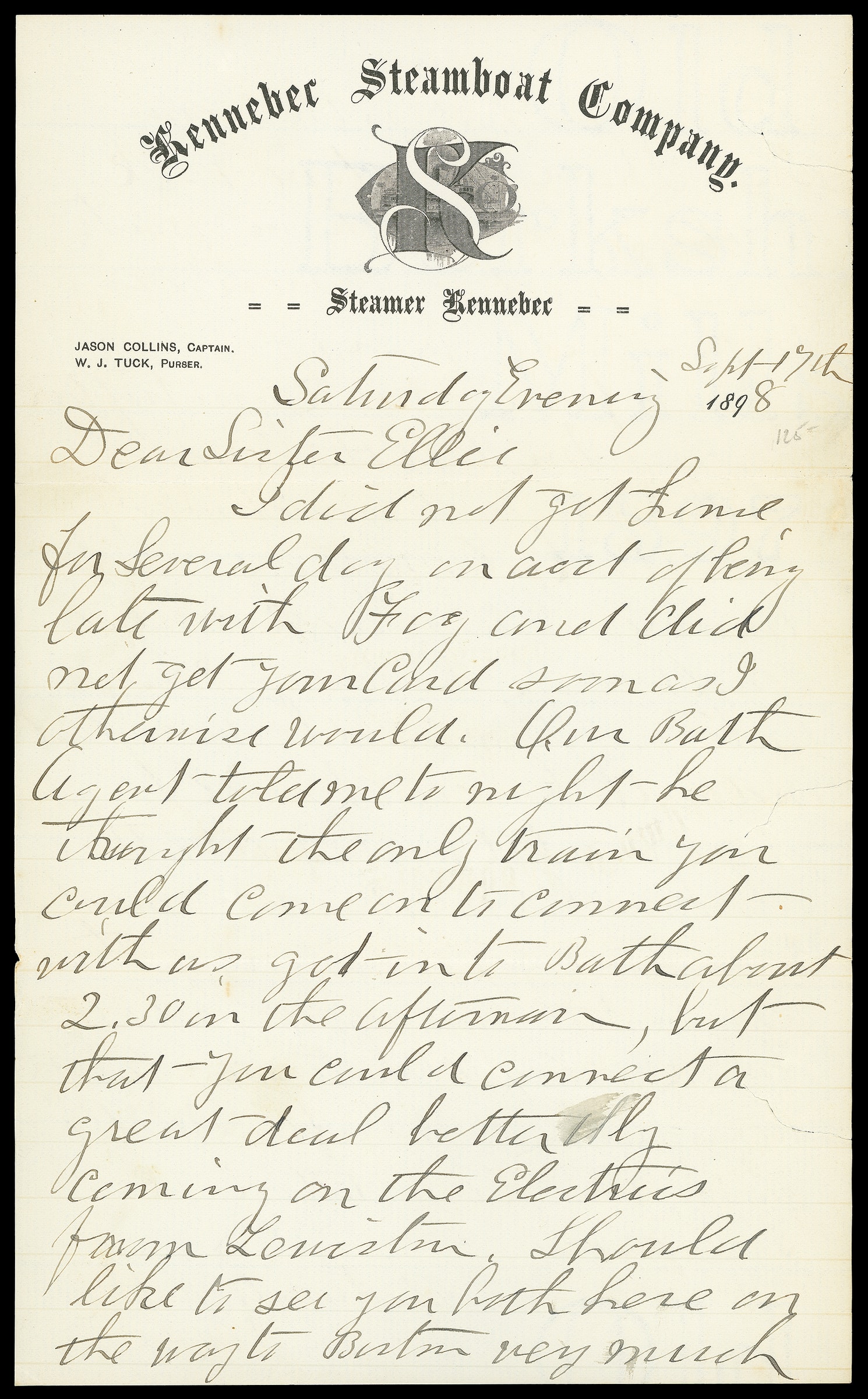 enclosure on printed Kennebec Steamboat letterhead; cover tear at left, Fine, unlisted in Milgram. Milgram No. 750A; Estimate $75 - 100. (Image1) (Image2)