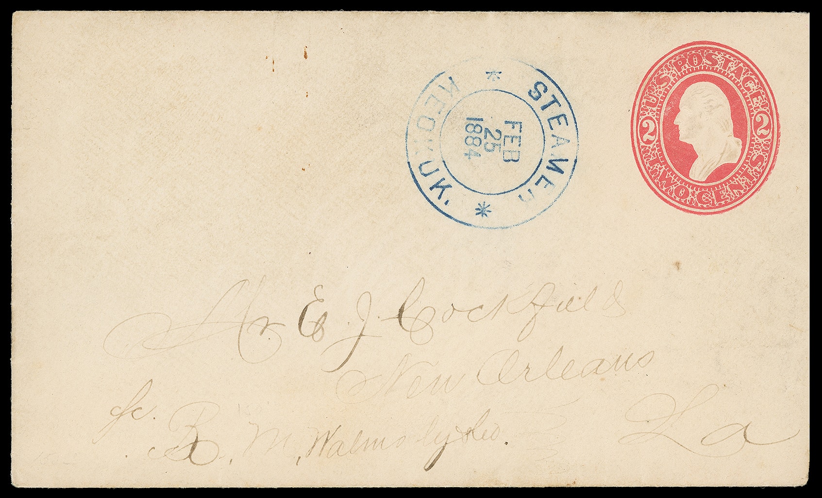 (Mississippi River). Blue "Feb 25, 1884" double-circle datestamp on 2¢ red entire to New Orleans La., Very Fine, ex-Somdal, Milgram. Milgram No. 754; Estimate $150 - 200.