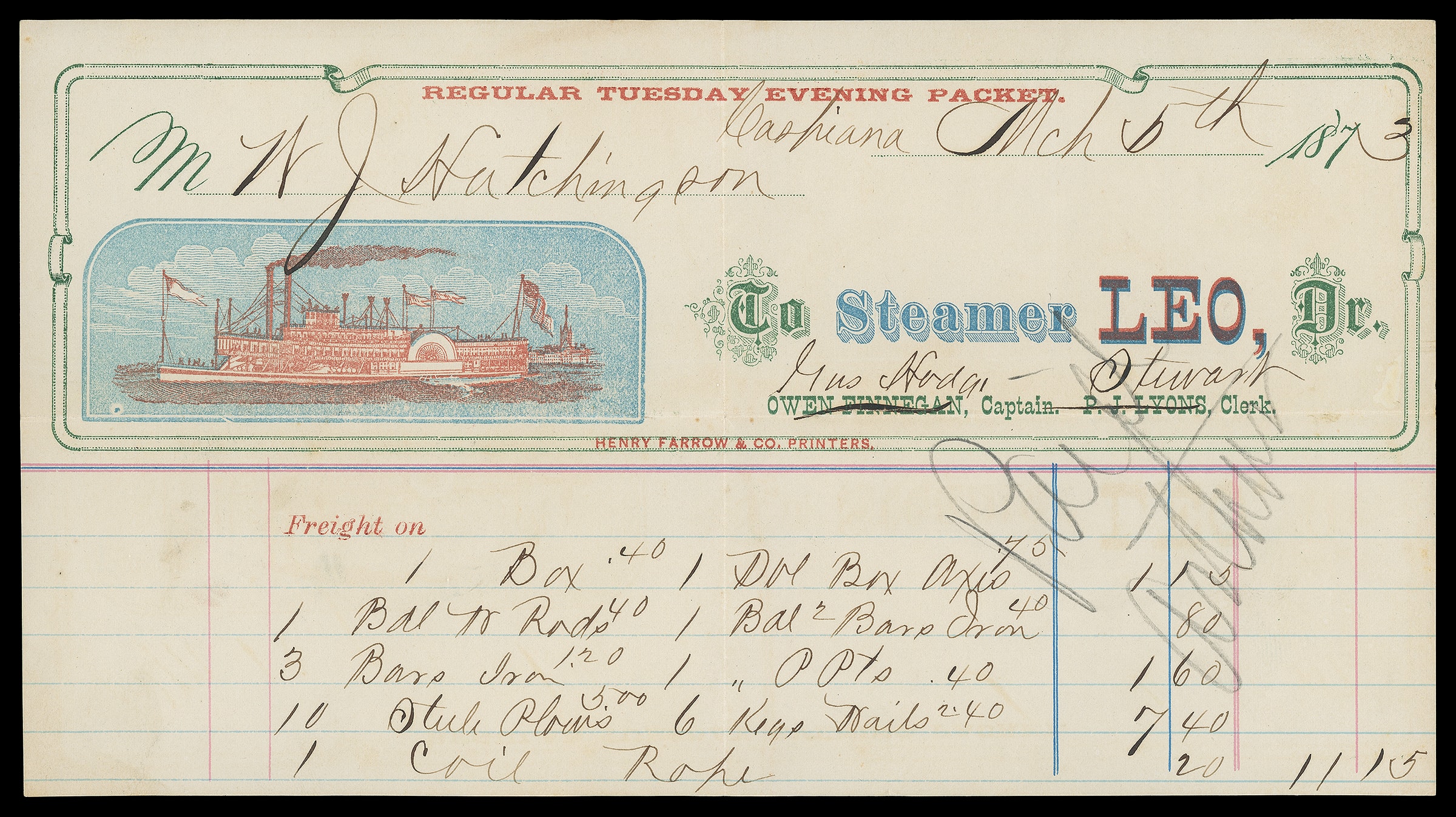 dated freight bill, Very Fine and choice, ex-Somdal, Milgram. Milgram No. 802; Estimate $300 - 400. (Image1) (Image2)