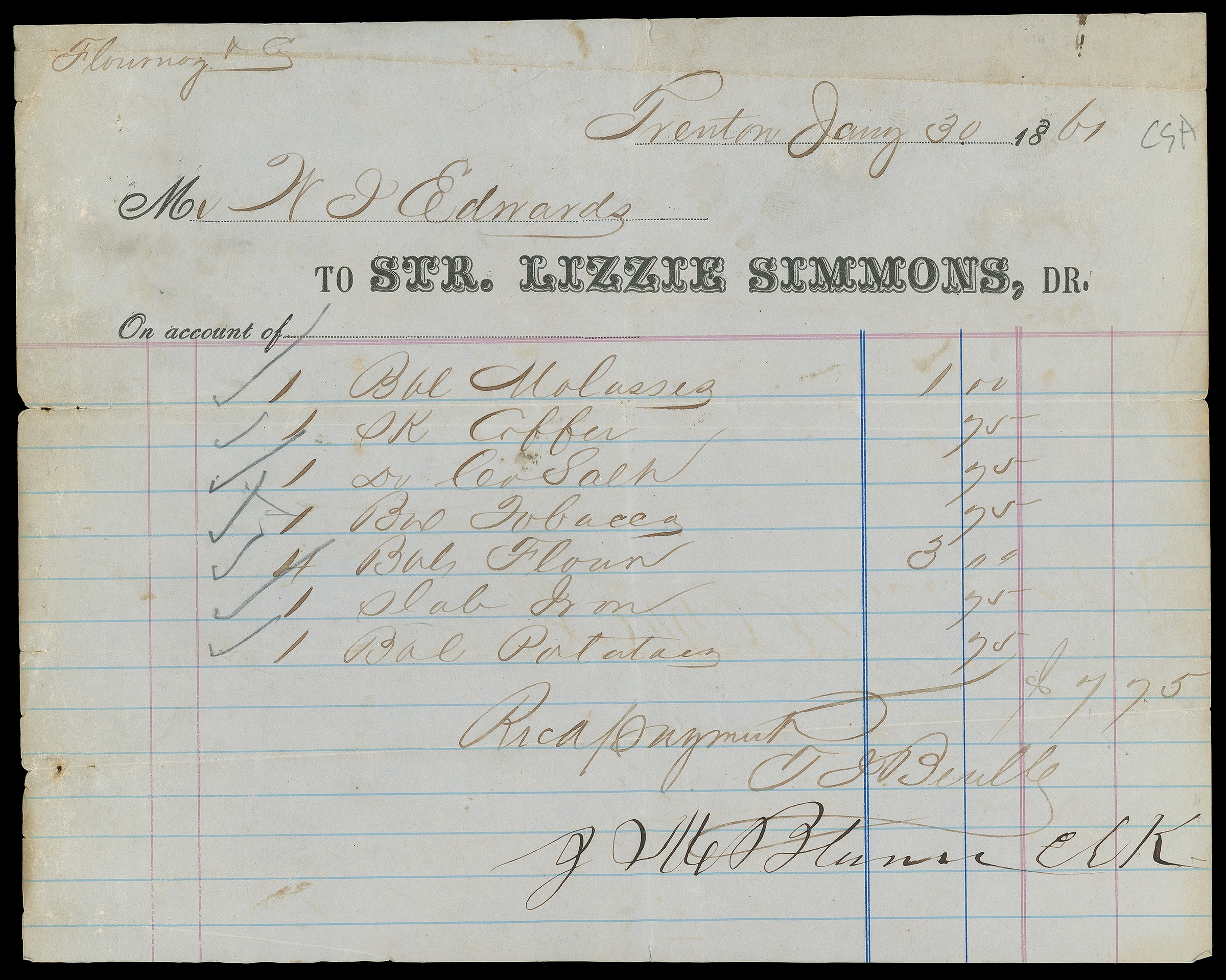 Steamer Lizzie Simmons (Ouachita River). Bold complete four-line straightline on 3¢ red (U10) buff Nesbitt entire from Carrol Hoy correspondence to New Orleans La.; usual filing holes; also includes printed Confederate States of America