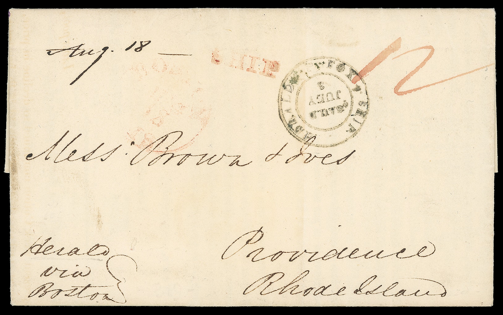Postage of 12¢ was collected from the addressee in Providence; 2¢ for the ship letter fee