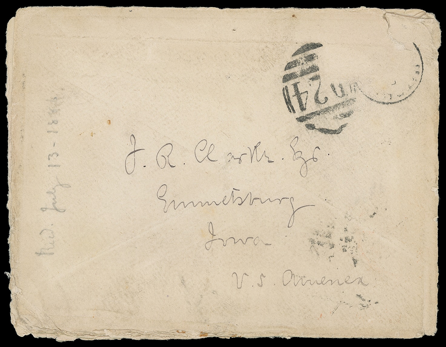 handstamp struck; light file fold affecting marking which is typically found on the reverse, fresh and Very Fine, ex-Milgram. Milgram No. 434; Estimate $200 - 300.