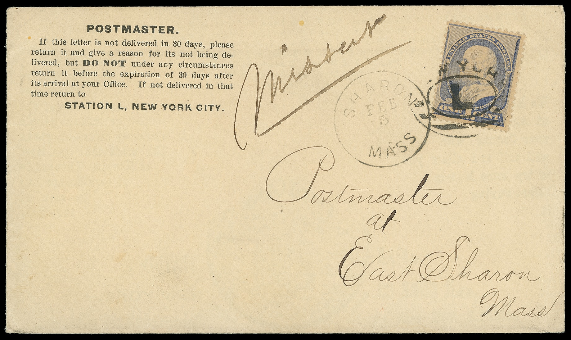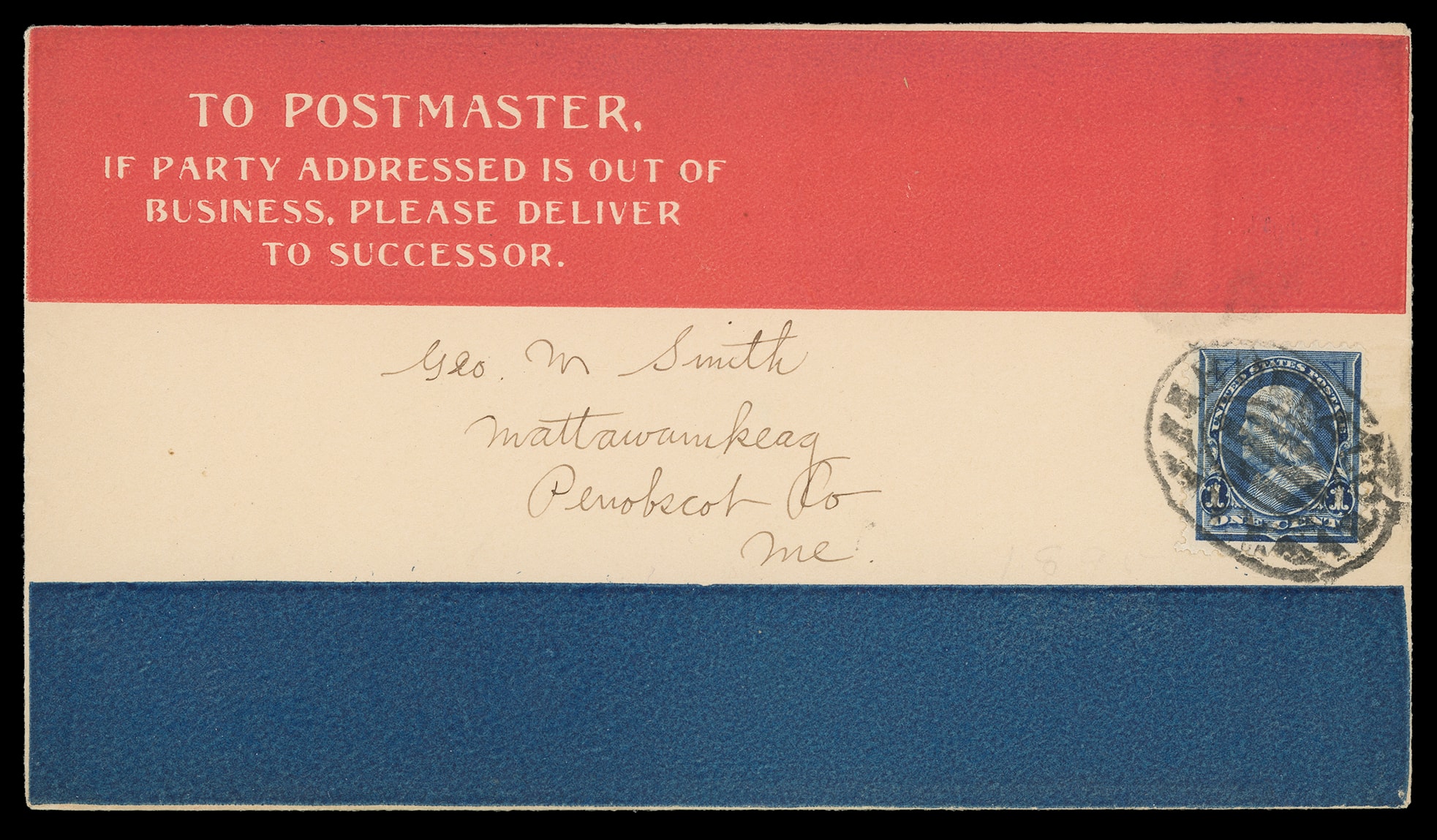 "Georgetown, Ohio Mar 3, 1897" cds to Smithville N.H.; faint stains and creasing at right, F.-V.F. Estimate; $75 - 100. (Image1)