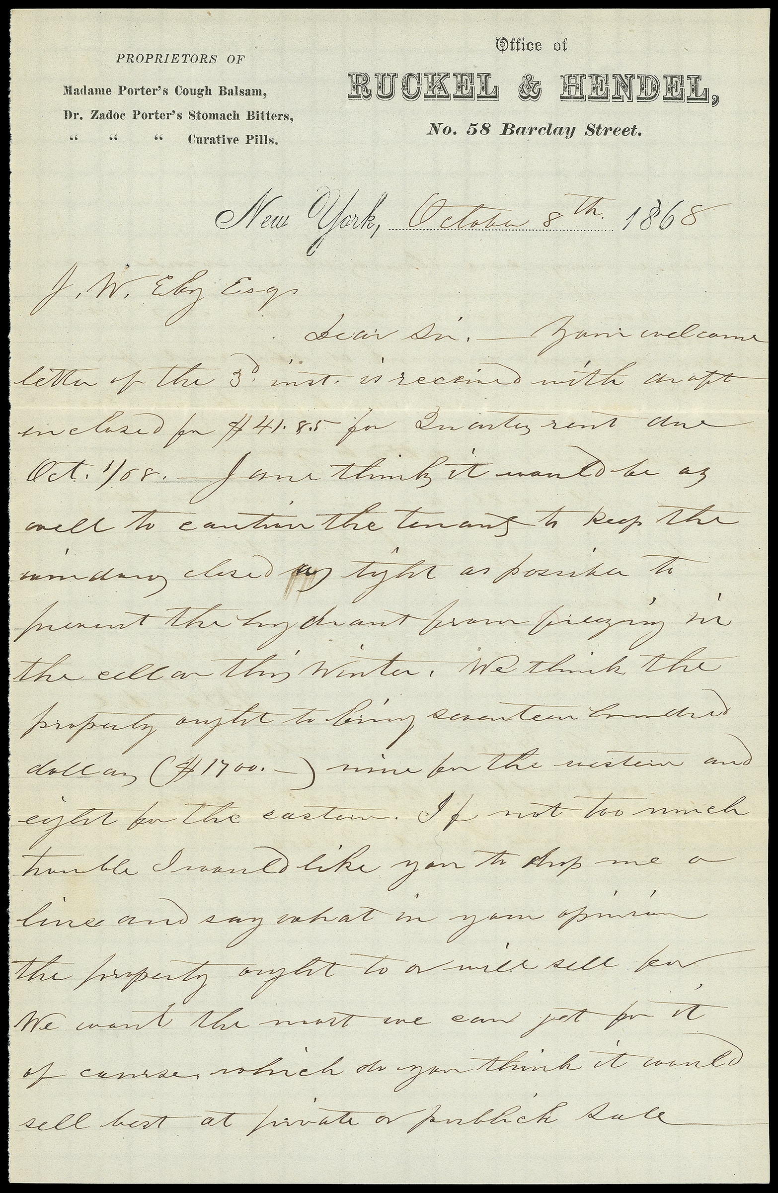 original letterhead enclosure, 1868 docketing at left, otherwise Very Fine. Estimate; $75 - 100. (Image1) (Image2)