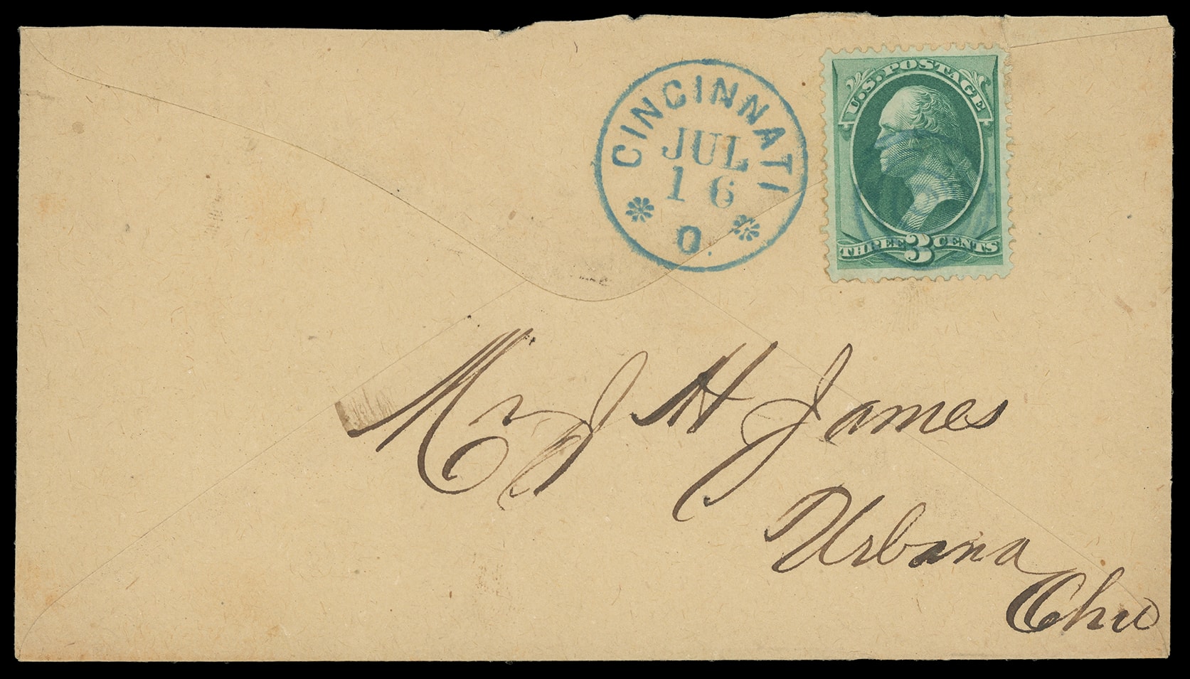 Jul 16" cds to Urbana, Ohio; reduced slightly at top; small corner fault upper right, not detracting from, F.-V.F. Estimate; $100 - 150. (Image1) (Image2)