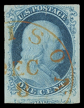 type IV, recut once at top and once at bottom. Position 81R1L, large margins except barely clear at bottom, deep color with a strong impression, partial San Francisco cds; small lower right corner margin thin, Very Fine