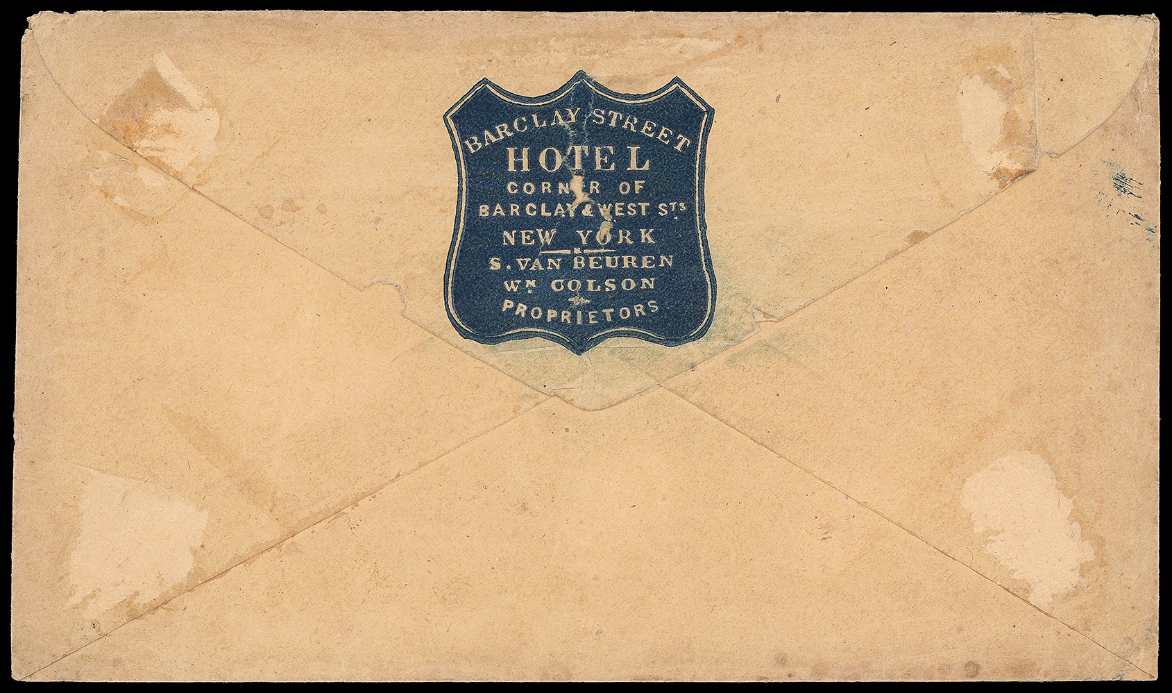 New York hotel card on backflap; light edge and corner wear, F.-V.F. Estimate; $50 - 75.