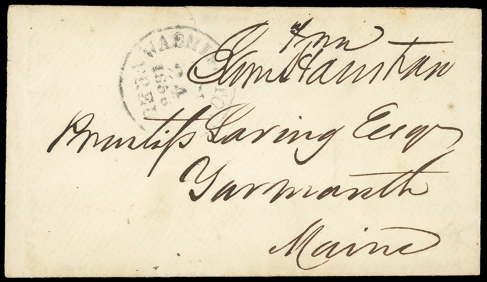 2       image(Congress) Sam Houston. Free frank "Free, Sam Houston" signature as U.S. Senator, entered mails with "Washington D.C., Free, Jun 24, 1856" integral cds on cover to Yarmouth, Maine; flap torn ending in small edge tear, Very Fine.