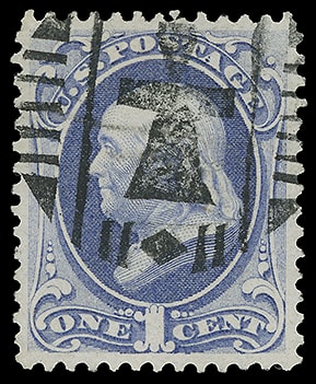 Cross within Geometric. Clear strike on 1¢ blue (156), well centered, Very Fine. Cole No. GEN-76; Estimate $150 - 200. (Image1)