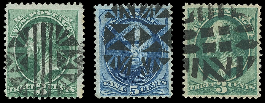 Iron Cross within Geometric. Duplexed with "New Orleans La. 11 Jul" cds ties 3¢ green (158) on piece, Extremely Fine and choice complete strike. Estimate; $150 - 200. (Image1)