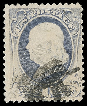 Pa., sharp strike cancels 3¢ green (147), rare and Very Fine strike. Cole No. AN-2; Estimate $300 - 400. (Image1)