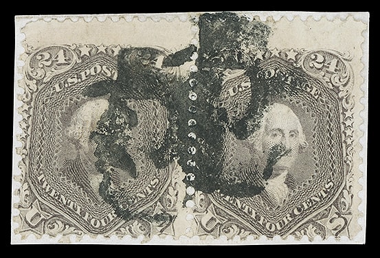 Union Soldier's Head. Two strikes tie 24¢ lilac (78) pair on small piece; right with small perf flaw at top, Very Fine patriotic cancel, ex-Emerson, Erivan. Skinner-Eno No. PH-F 73; Estimate $500 - 750.