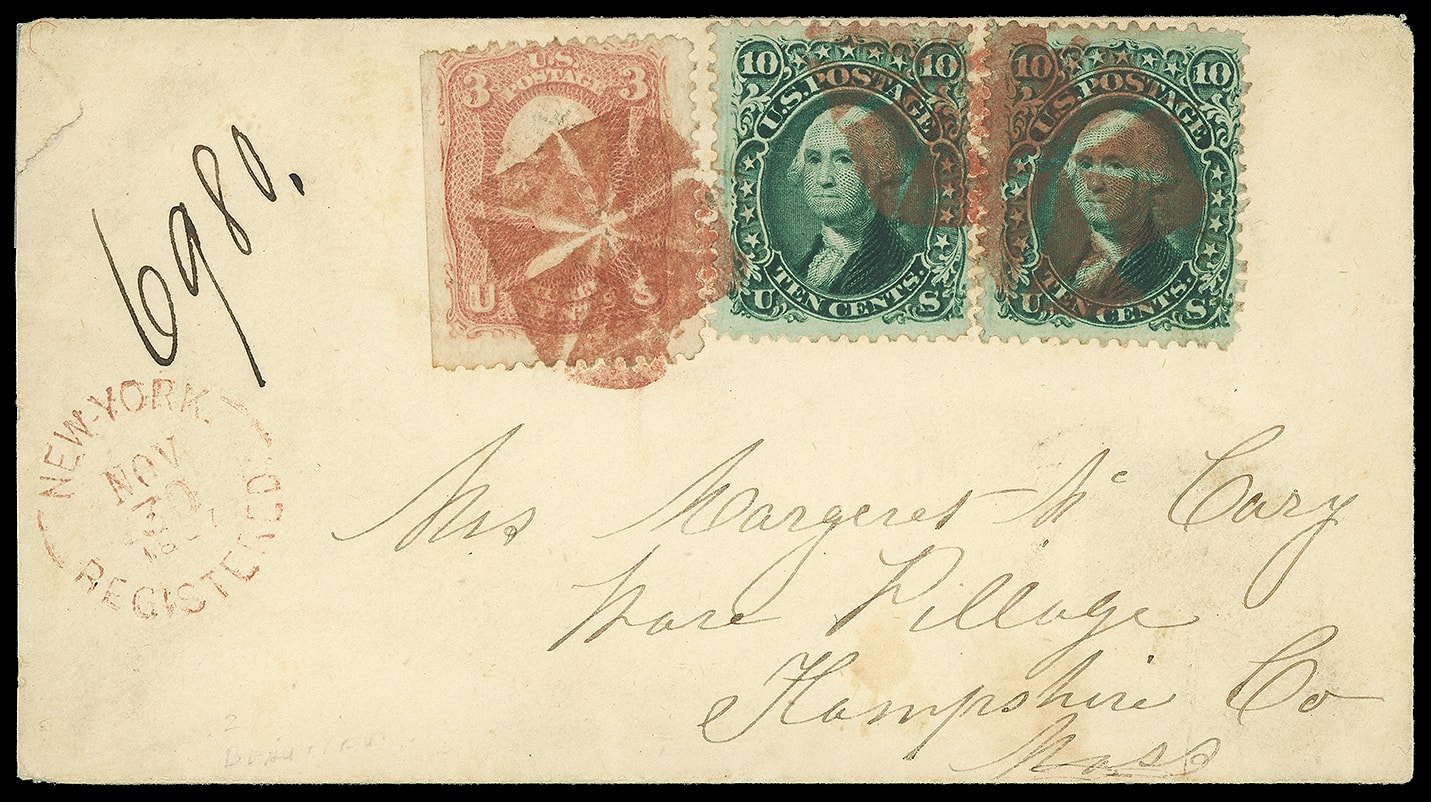 The New York flueron cds was used only on registered mail. The fancy cancellation was also used only on registered mail.