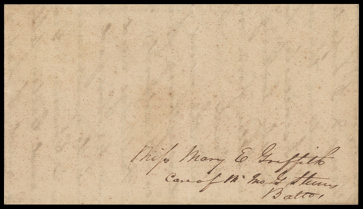 The known examples of this cameo campaign design in red and blue, all show western postal usages. It is likely that they were printed and sold in San Francisco by one of the manufacturers of illustrated California miners envelopes.