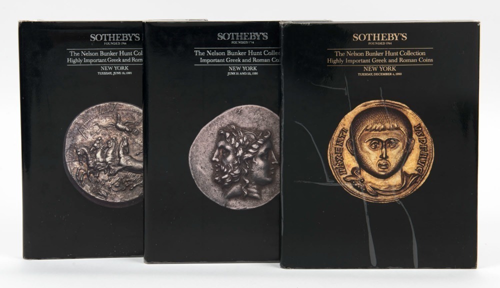 Auction Catalogues: Sotheby's "The Nelson Bunker Hunt Collection Highly Important Greek and Roman Coins". New York 19, 21 & 22 June, 1990; with prices realized lists. (3 vols.).