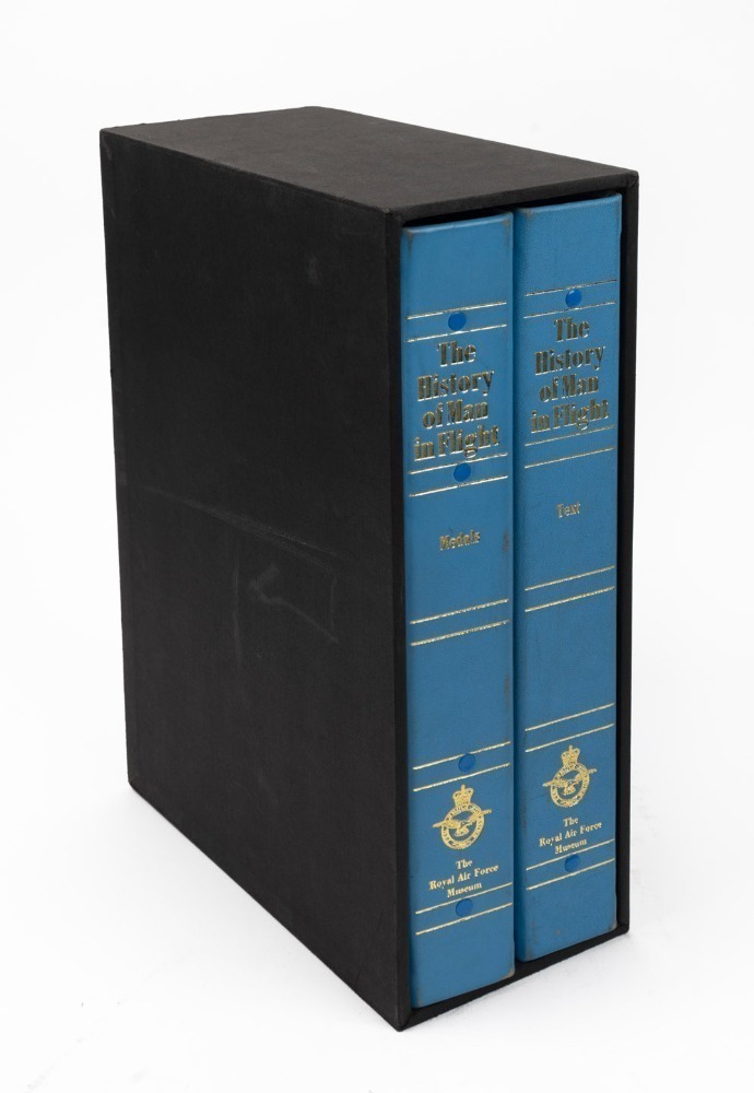THE HISTORY OF MAN IN FLIGHT: a set of 50 silver medallions, each depicting an event in aviation history. Housed in presentation album, together with a separate album housing the text. Both albums in a