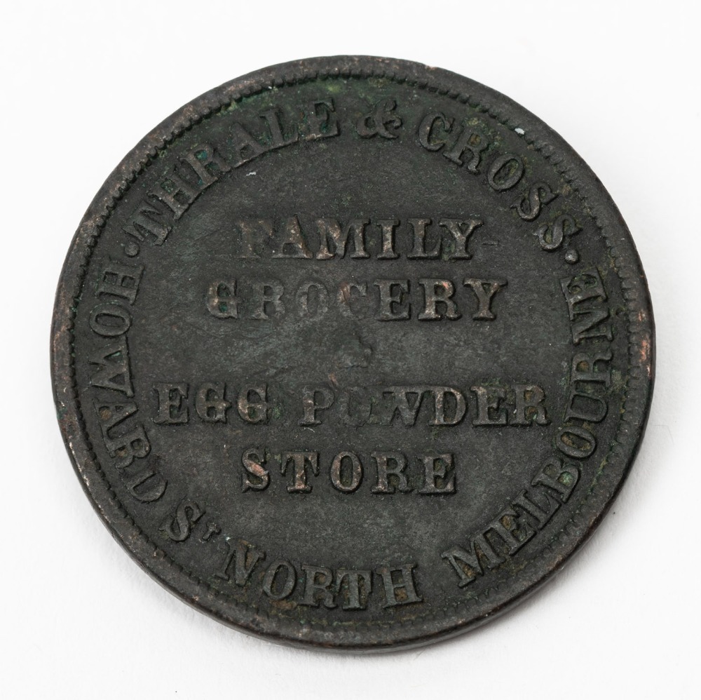 THRALE & CROSS (R555) ½d FAMILY GROCER & EGG POWDER STORE * HOWARD ST NORTH MELBOURNE / Kangaroo facing right verso, F-VF.