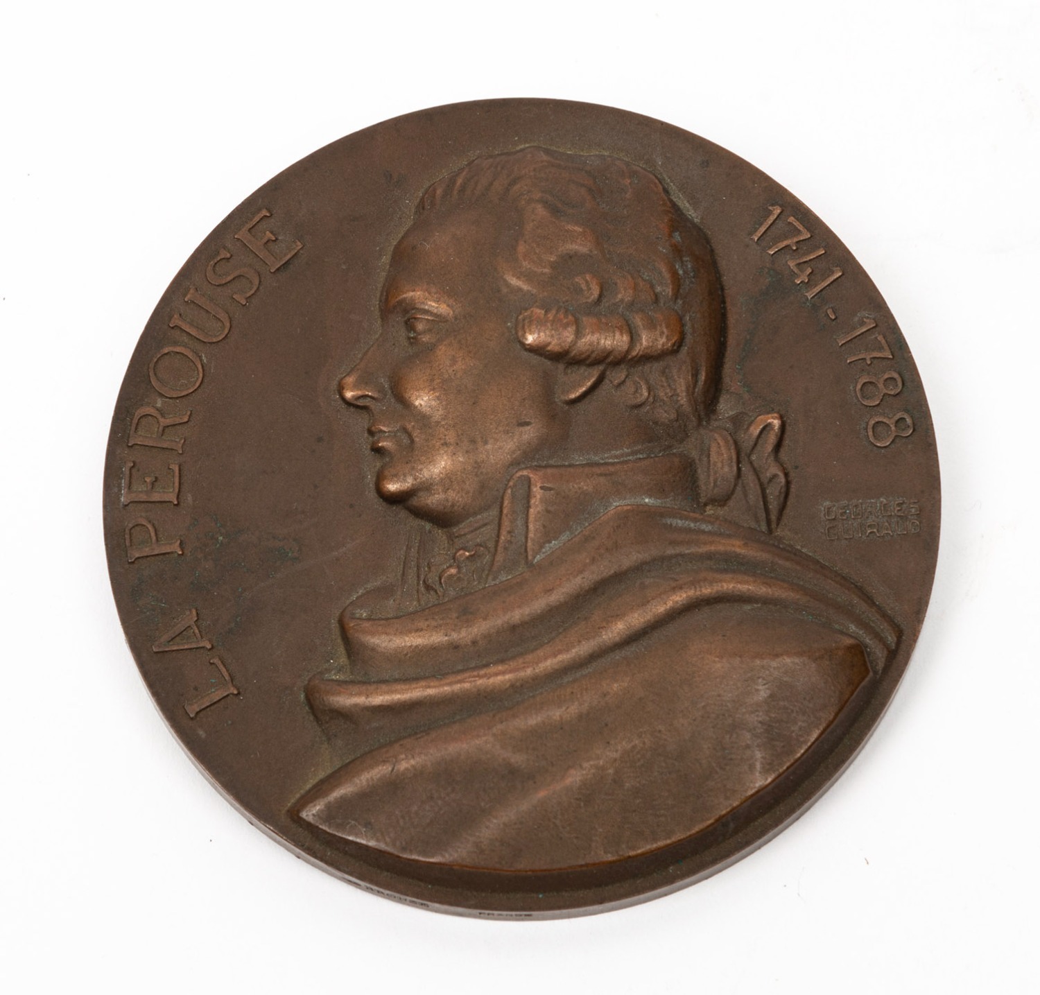 FRENCH EXHIBITIONS IN AUSTRALIA, March - April 1956, La Perouse 1741-1788, in bronze (67mm) by Georges Guiraud. Extremely fine and scarce.