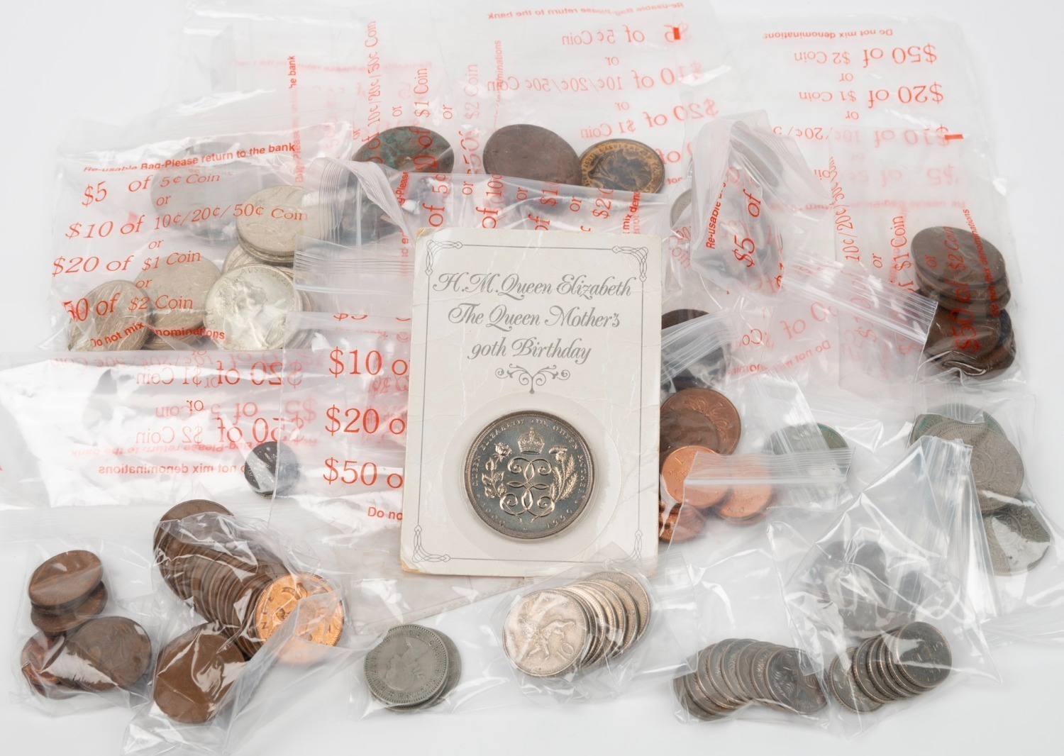 An accumulation of mainly Australian and English coins; noted 1966 50c (x 16), 1937 Crown, etc.