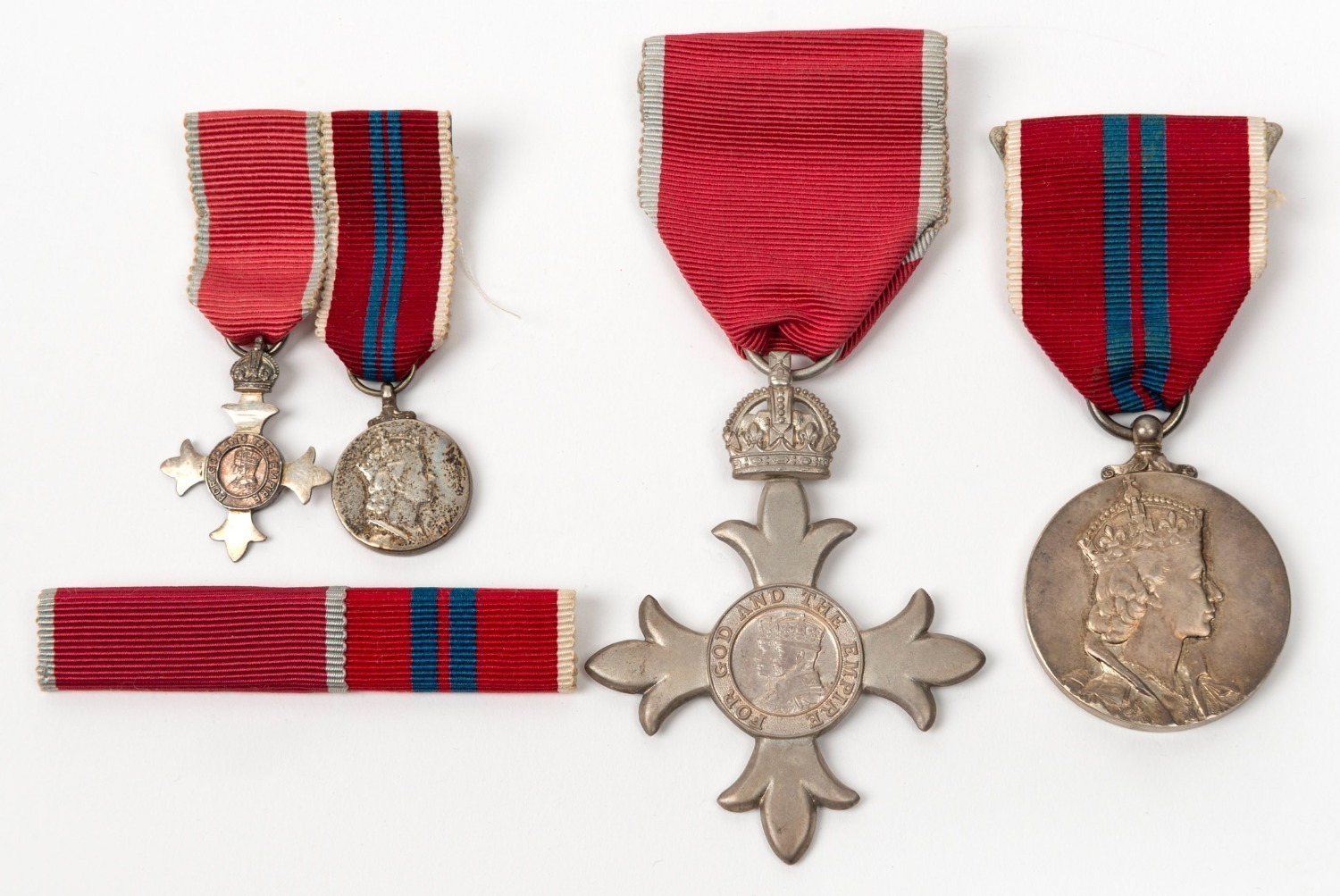 An M.B.E. (post 1936) in presentation case; an Elizabeth II Coronation medal in presentation box; together with the 2 relevant miniatures. (4 items).