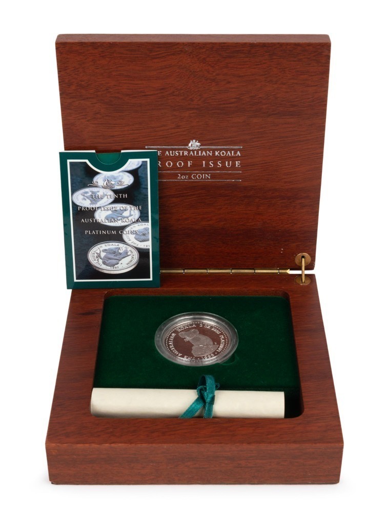 1998 $200 Koala Proof Platinum 2oz coin in superb timber case with Certificate of Authenticity No.10 of only 64 coins declared to have been minted.
