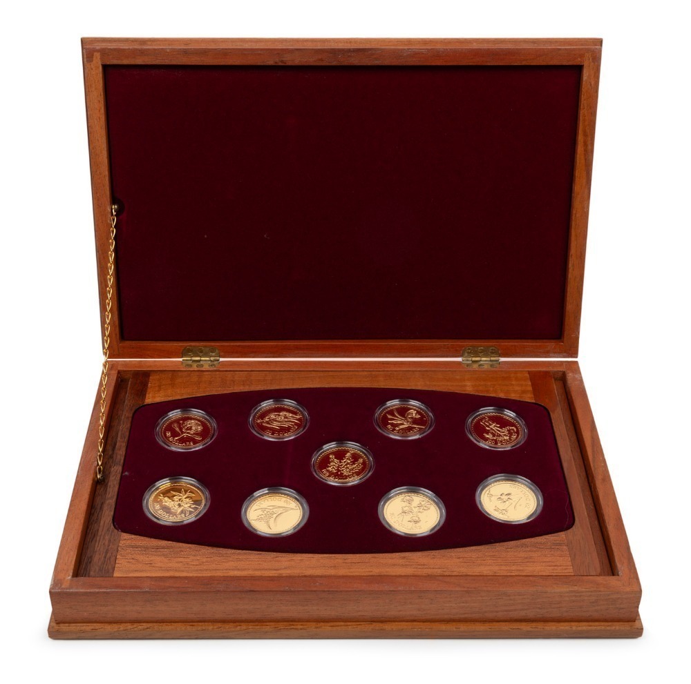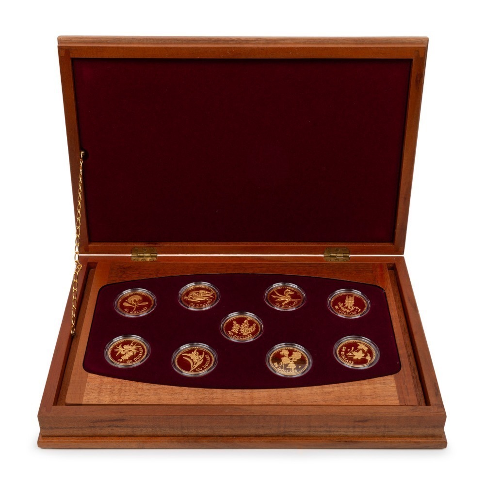 1995 - 2003 FLORAL EMBLEMS OF AUSTRALIA: A complete set of nine PROOF 24ct gold $100 coins presented in a superb timber case with felt lining; each coin accompanied by its' own Certificate of