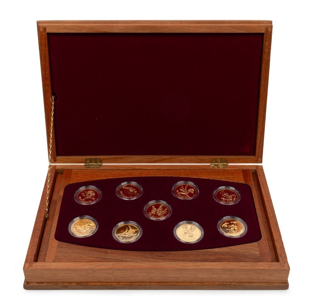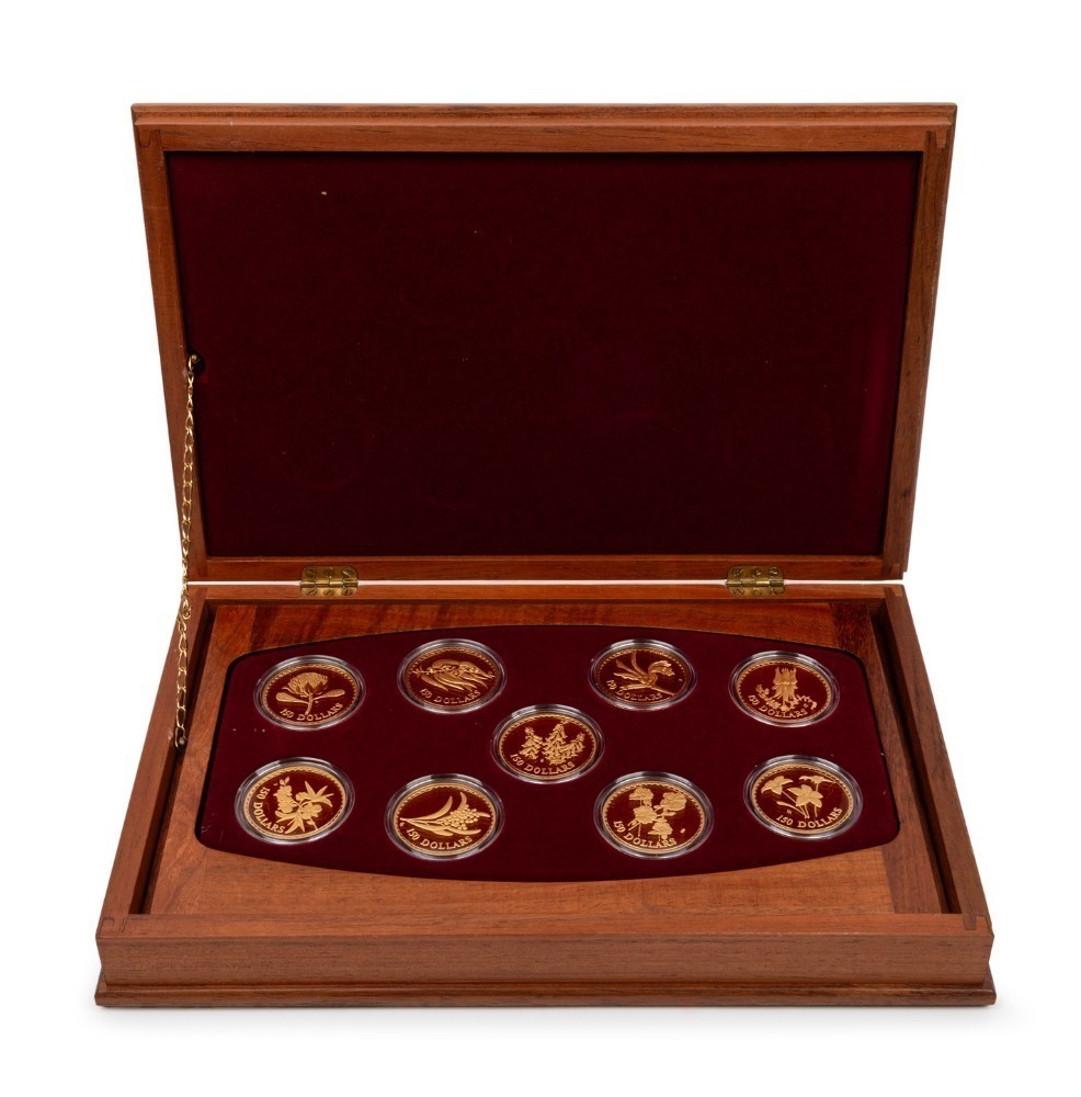 1995 - 2003 FLORAL EMBLEMS OF AUSTRALIA: A complete set of nine uncirculated 22ct gold $100 coins presented in a superb timber case with felt lining; each coin accompanied by its' own Certificate of