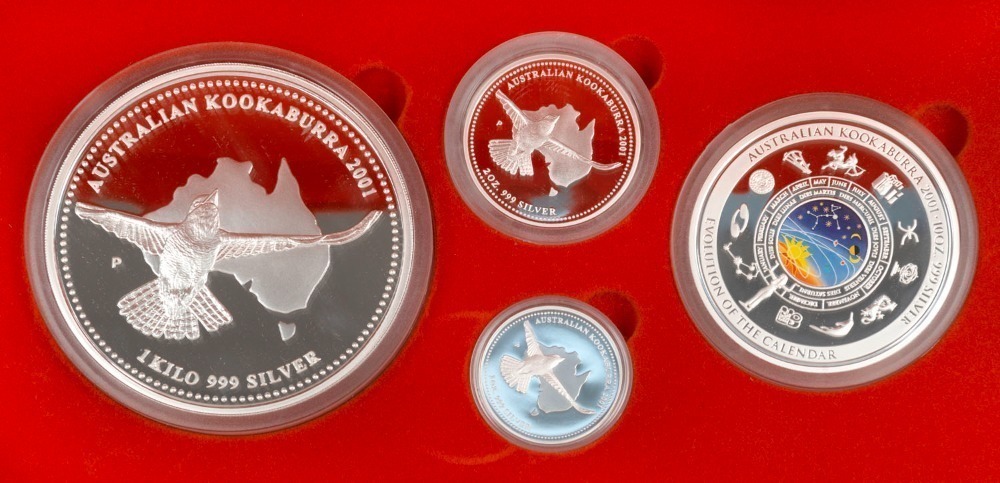 The Australian Kookaburra 2001 Proof Issue - KILO COLLECTION in presentation case containing one of each of the kilo, ten ounce, two ounce and one ounce proof coins produced by The Perth Mint. With Certificate