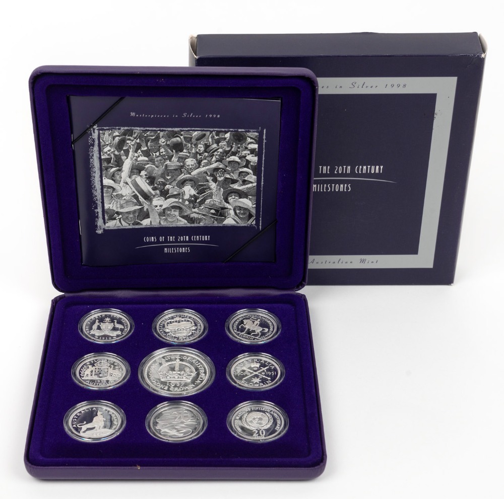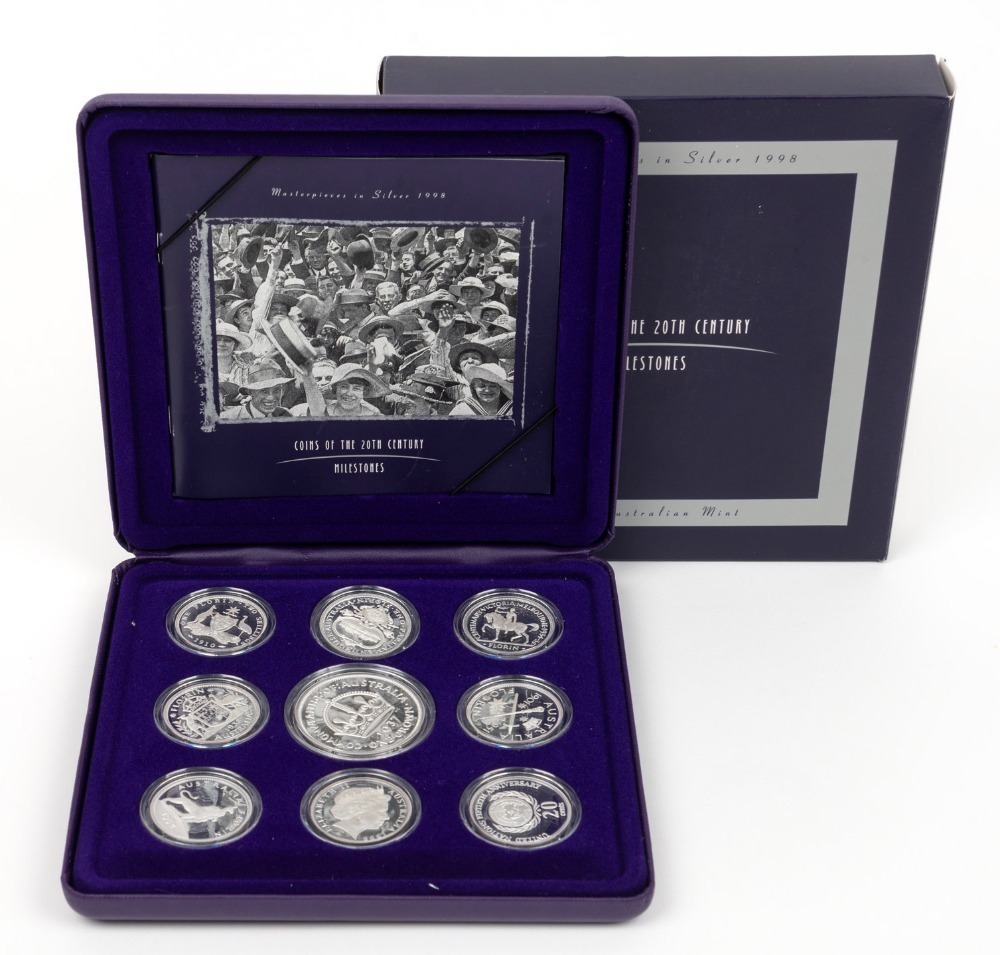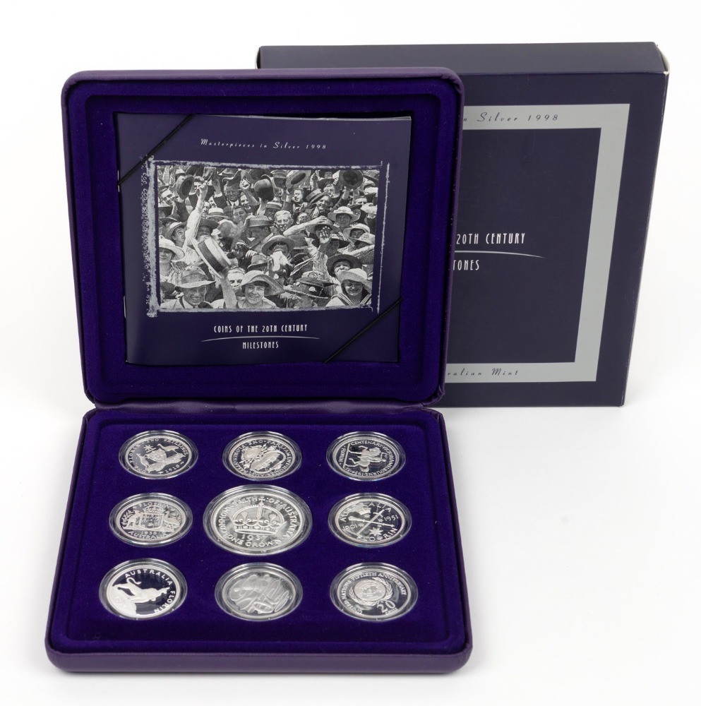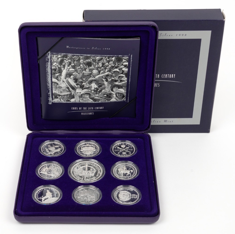 Masterpieces in Silver - Coins of the 20th Century - 1998 Milestones silver proof set of 9 coins ; set No.1933 of 15,000 in original presentation case and box with certificate.