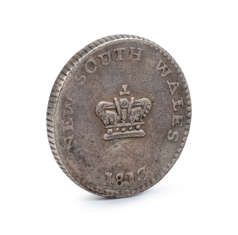 1813 New South Wales Fifteen Pence or Dump. Struck with die pair A/1 with H on reverse not visible; but with traces of the underlying design visible on reverse.