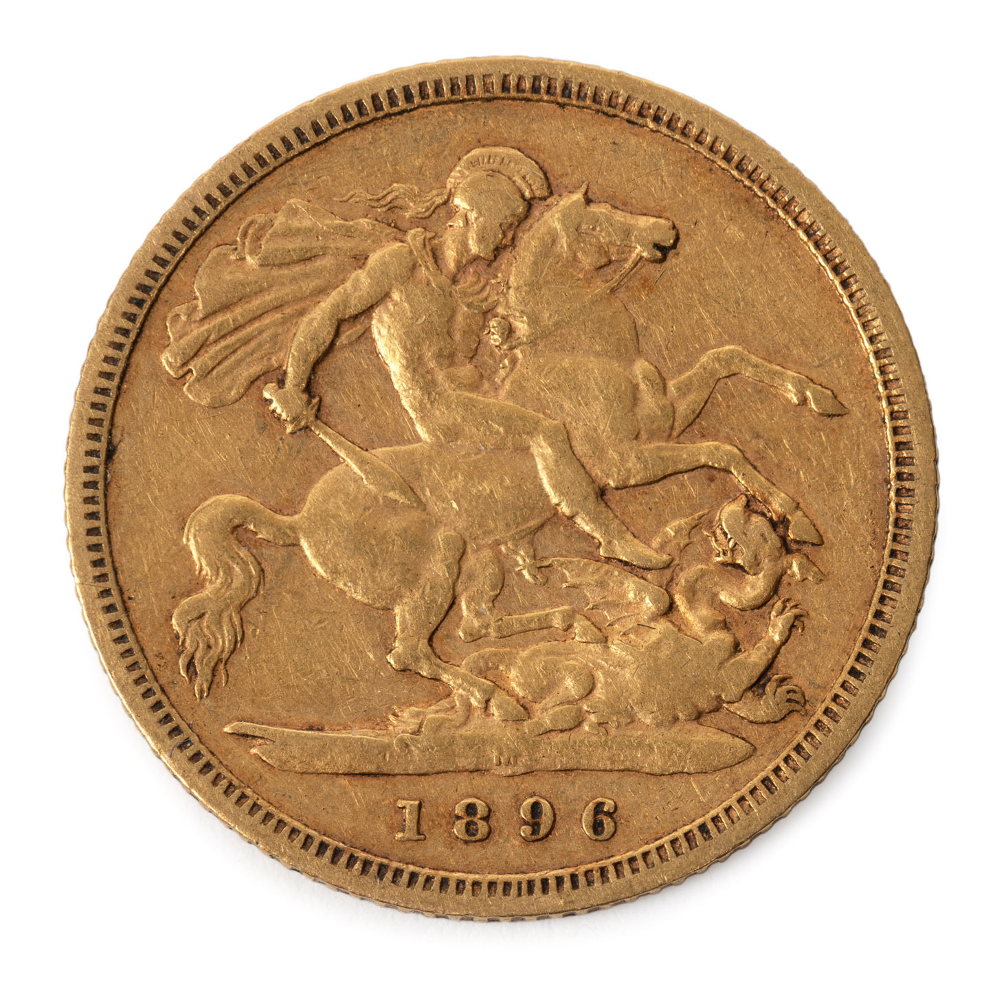 Half Sovereign, Queen Victoria Veiled Head, 1896 St. George reverse, Sydney Mint, F-VF.
