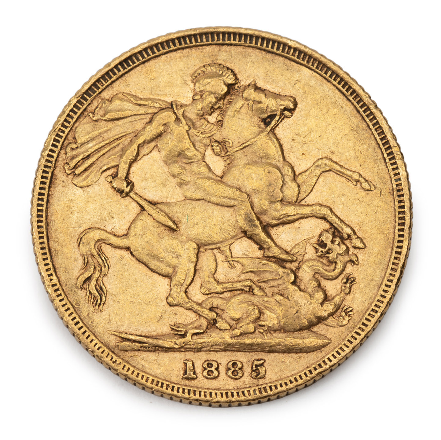 1885 Sovereign, Young Head, St. George reverse, Sydney, VF+.