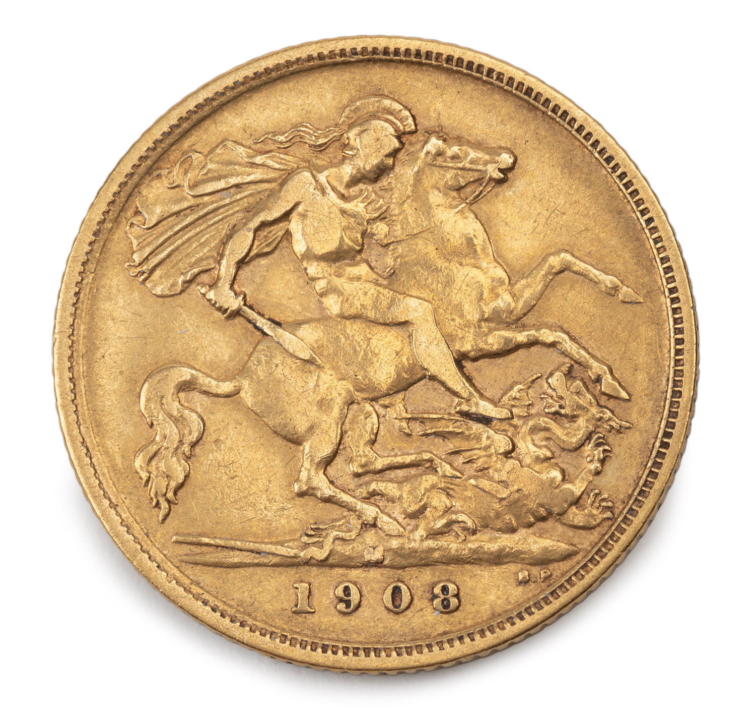 Half Sovereign, Edward VII, 1908 Shield reverse, Melbourne Mint, VF.