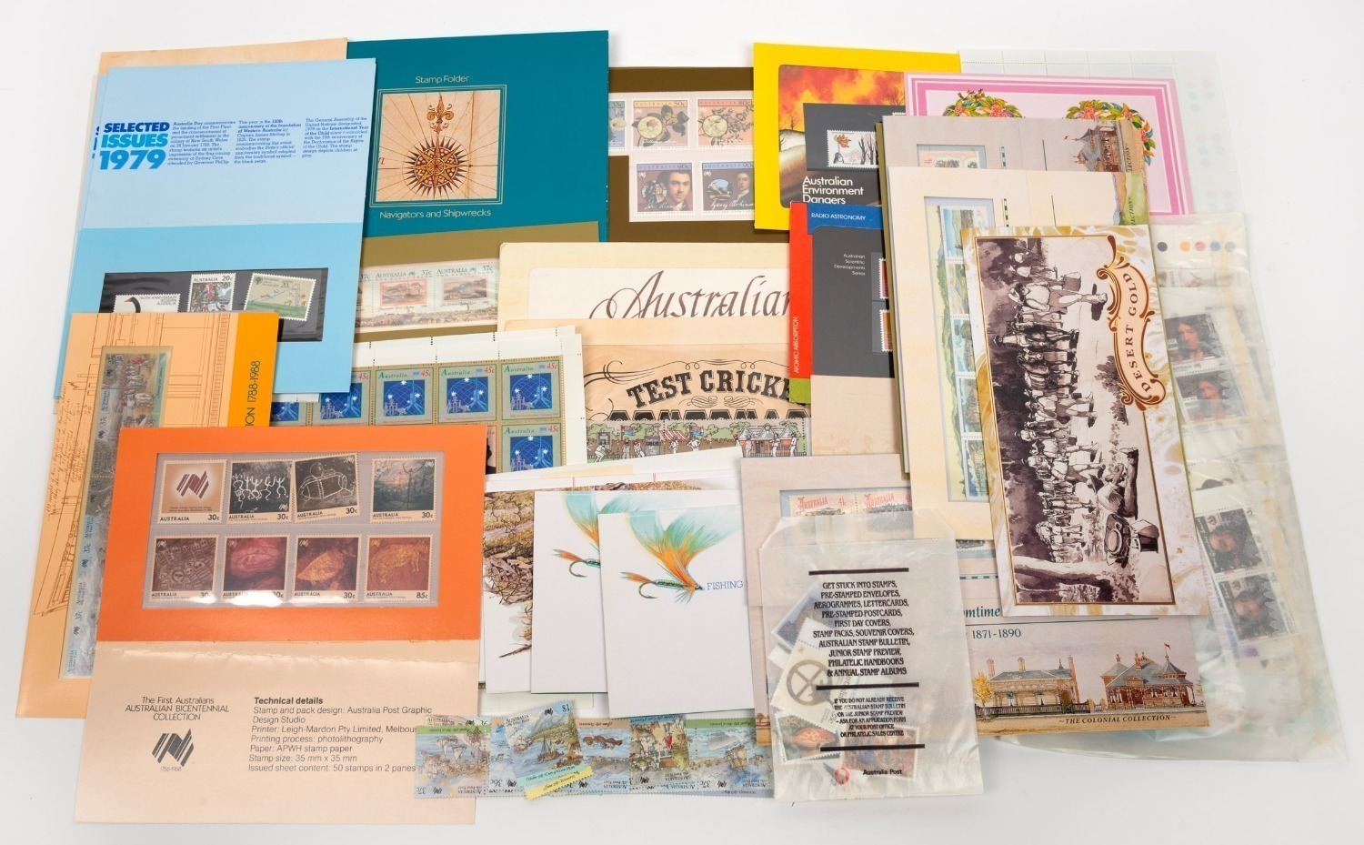 A large accumulation comprising of multiple 1981 - 91 APO Yearbooks, plus stamp packs, sheets and part sheets, FV: $900+.