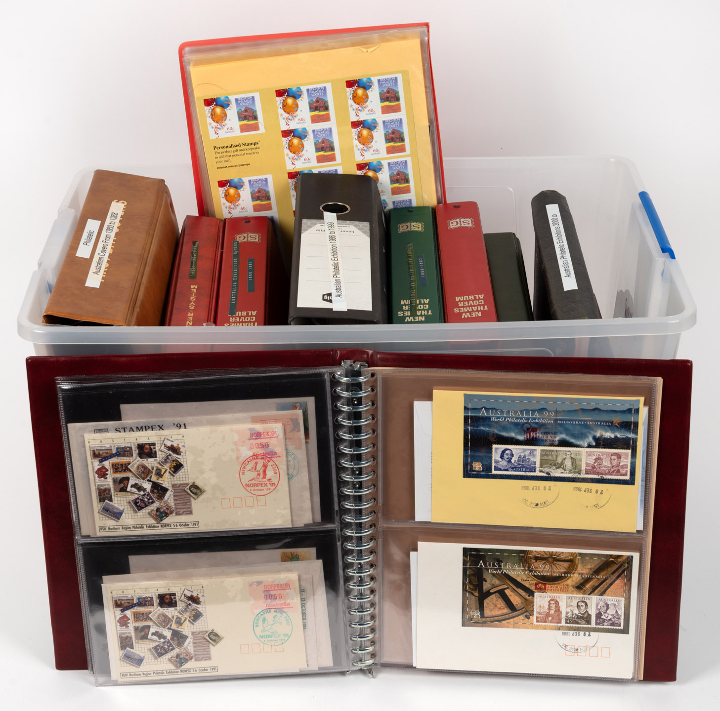 AUSTRALIAN PHILATELIC EXHIBITIONS, ETC: 1932 - 2010 comprehensive collection of covers, labels, overprinted items, souvenirs, booklets, etc., with main strength in the 1970s - 2000s; all housed in 11 albums and