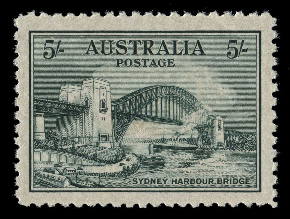 1932 (SG.143) 5/- Sydney Harbour Bridge, excellent centring and fresh MUH.