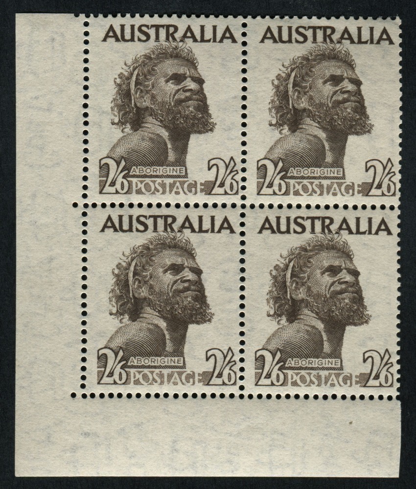 1952 (SG.253) 2/6 Aborigine, No Imprint lower left corner blk.(4); superb MUH. BW:265zd.