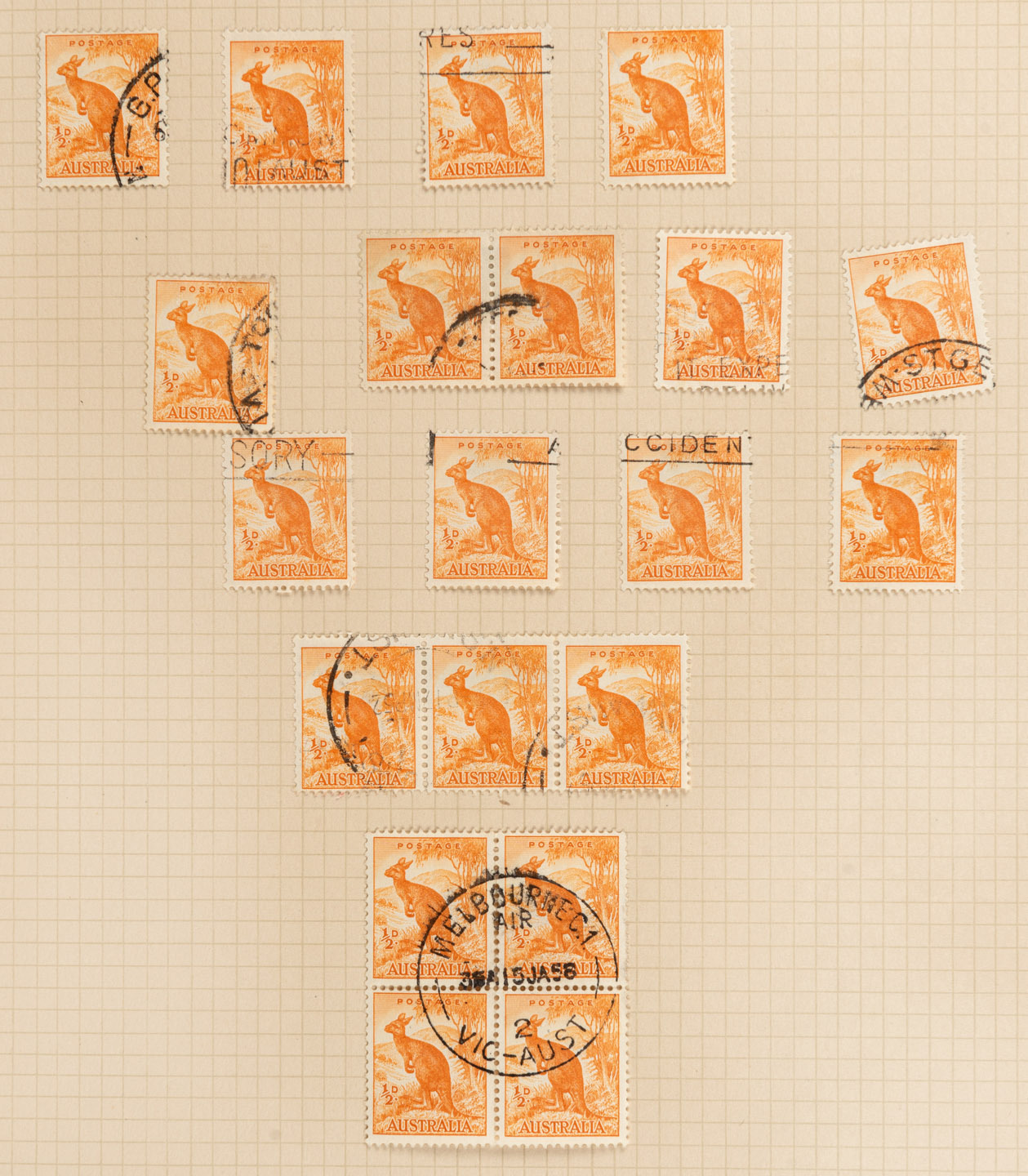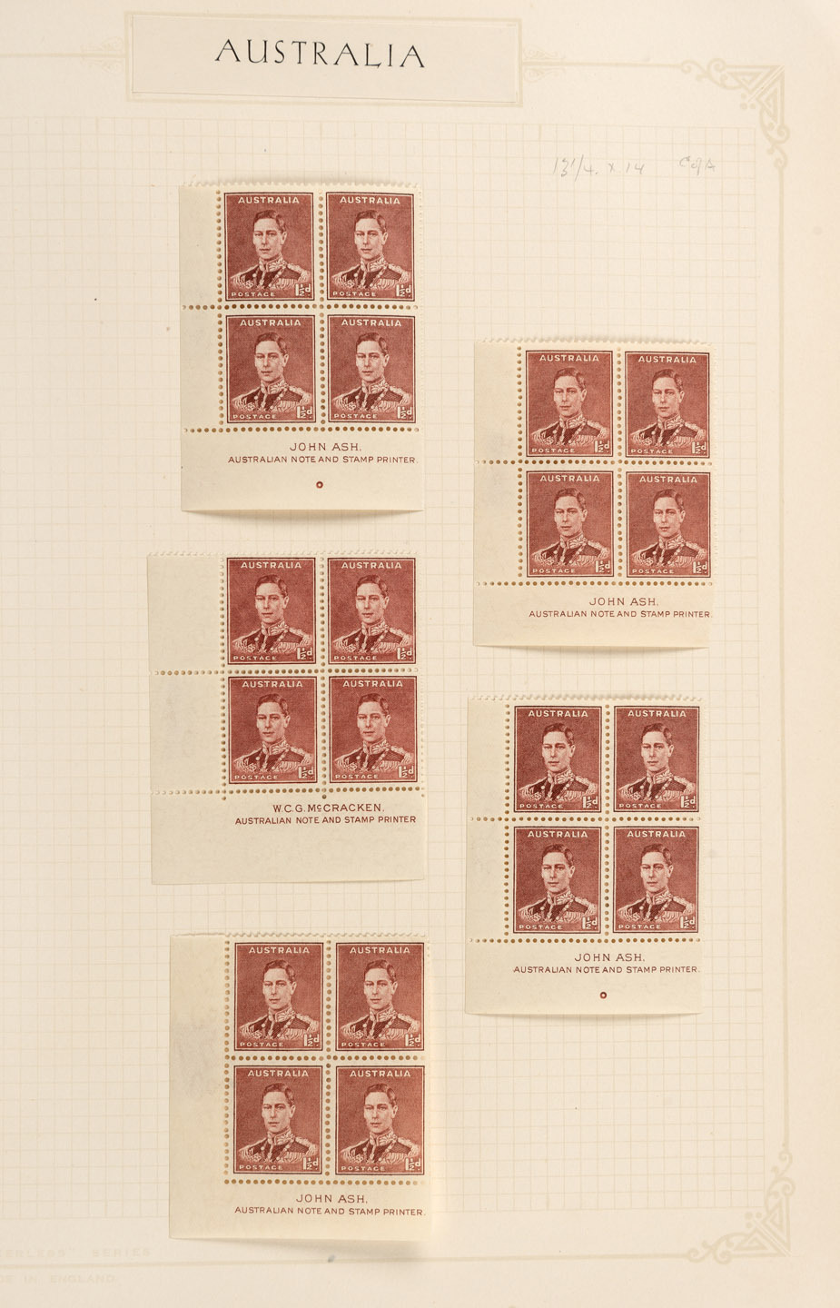 normal and perf.OS; 1930 1½d & 3d Sturt normal and perf.OS; and 1931 Kingsford Smith 2d, 3d & 6d normal cnr.blks.4 CTO. (Total: 13 blks.4).