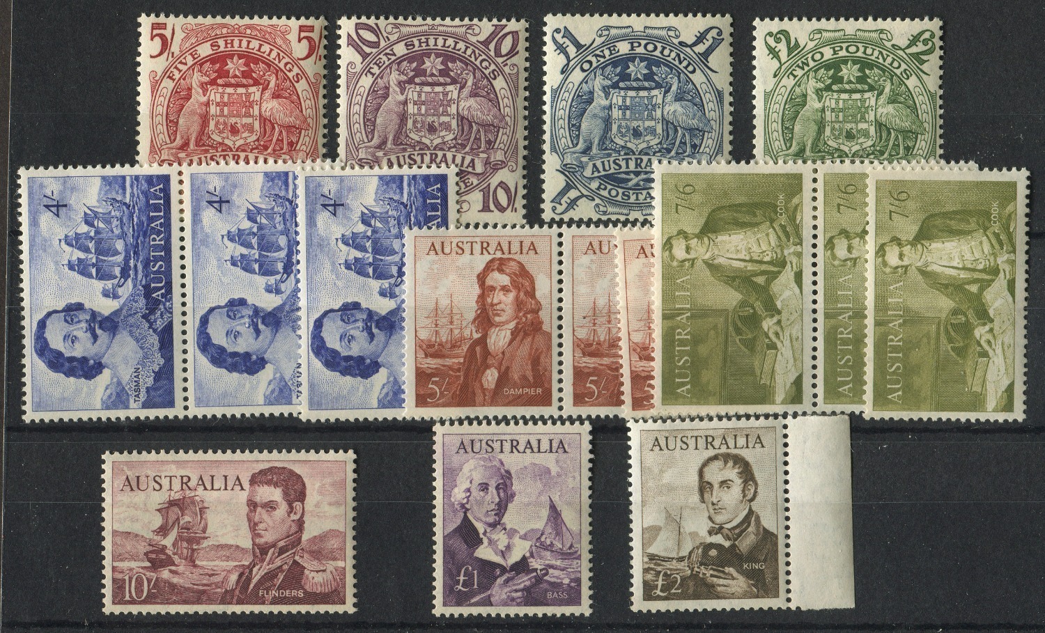 5/- - £2 Arms set of 4, plus Navigators 4/- (3), 5/- (3), 7/6 (3), 10/-, £1 and £2, all fresh MUH. (16).